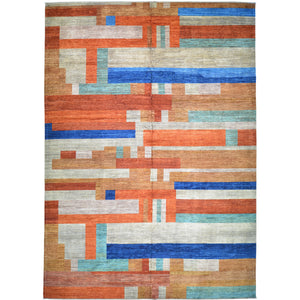 Hand-Knotted Modern Contemporary Stripes Design Handmade Rug (Size 10.1 X 13.8) Cwral-11718
