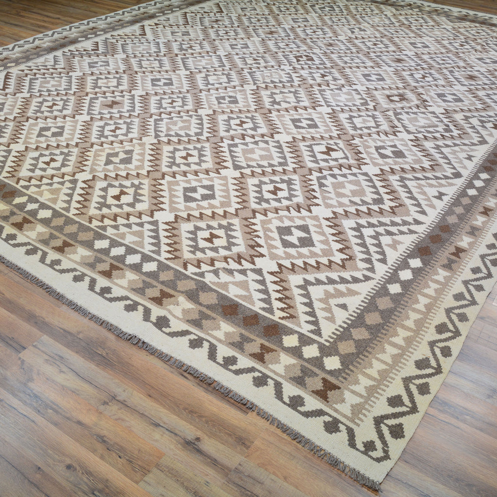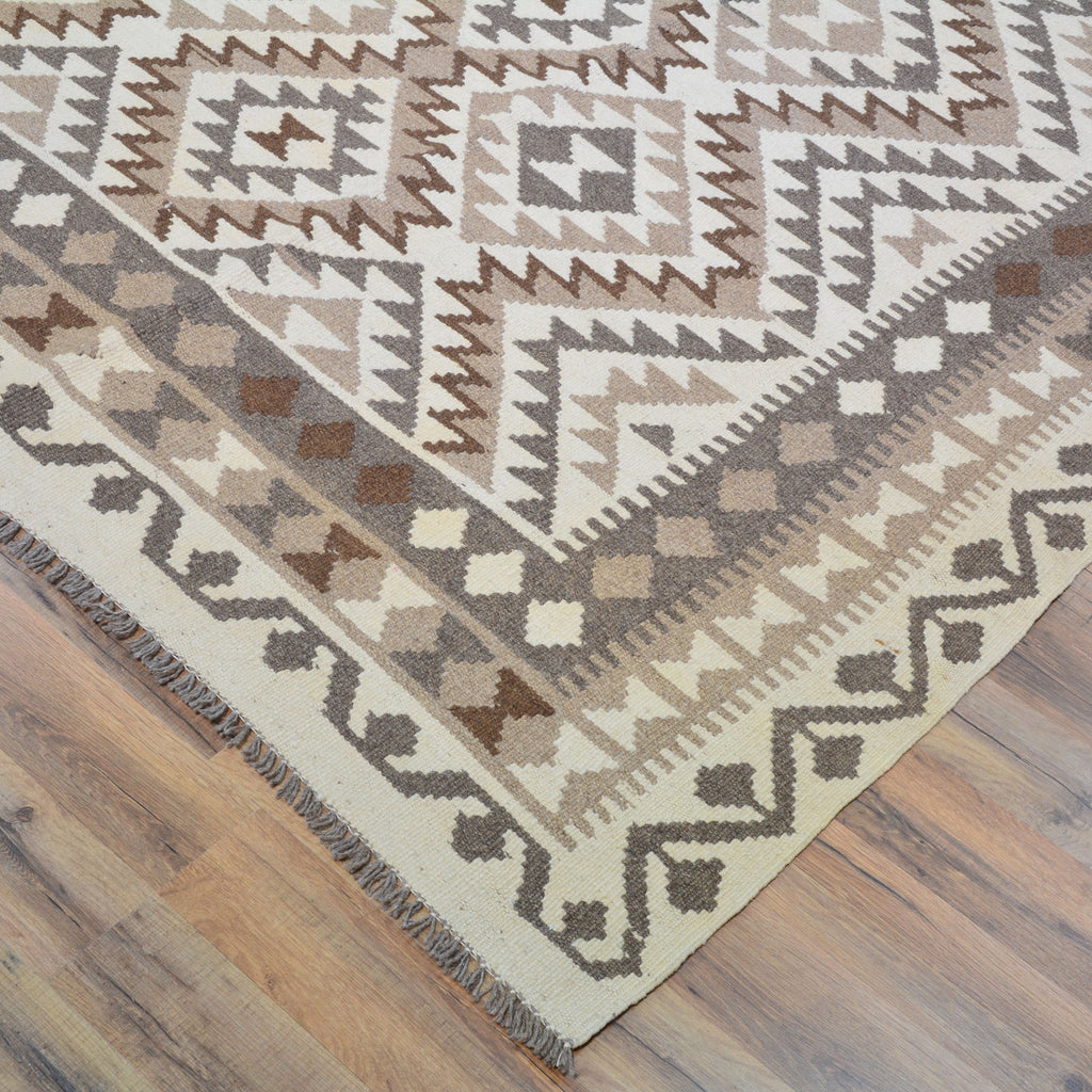 To avoid long vertical slits that can make a Hand-Woven rug not durable, most Kilim rugs are created with diagonal or horizontal patterns. This is why it's very common to see octagons, diamonds and triangular shapes in a Flatweave rug.