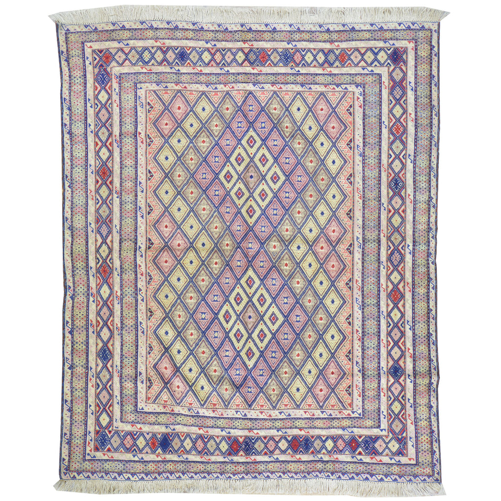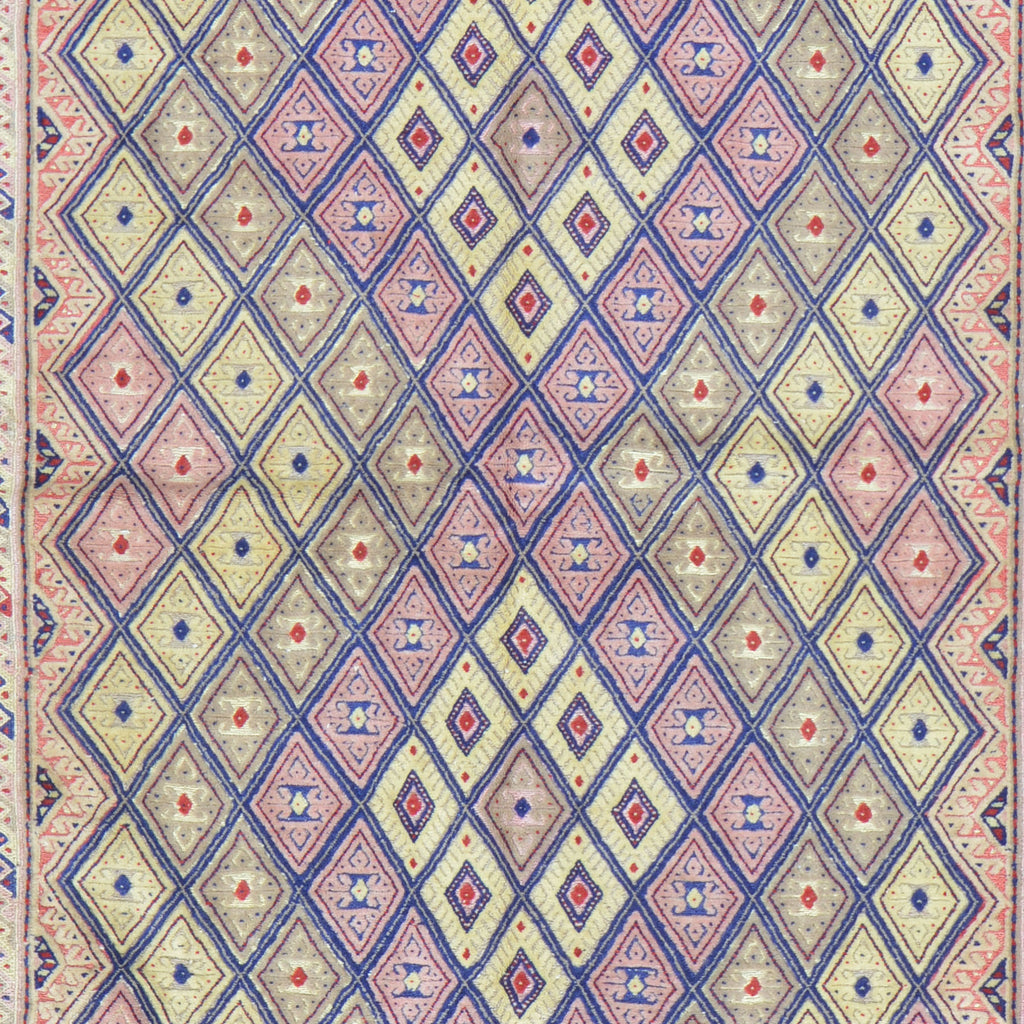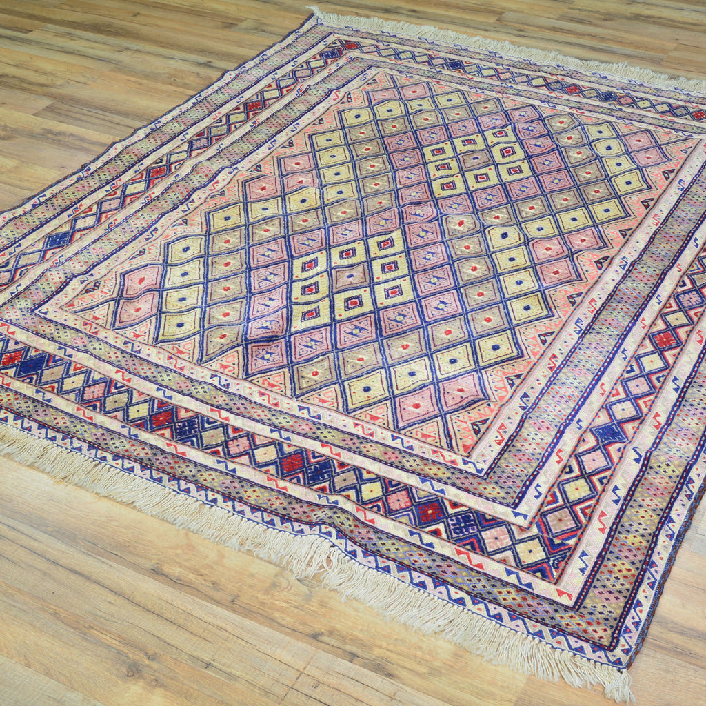 To avoid long vertical slits that can make a Hand-Woven rug not durable, most Kilim rugs are created with diagonal or horizontal patterns. This is why it's very common to see octagons, diamonds and triangular shapes in a Flatweave rug.