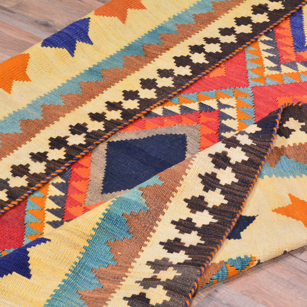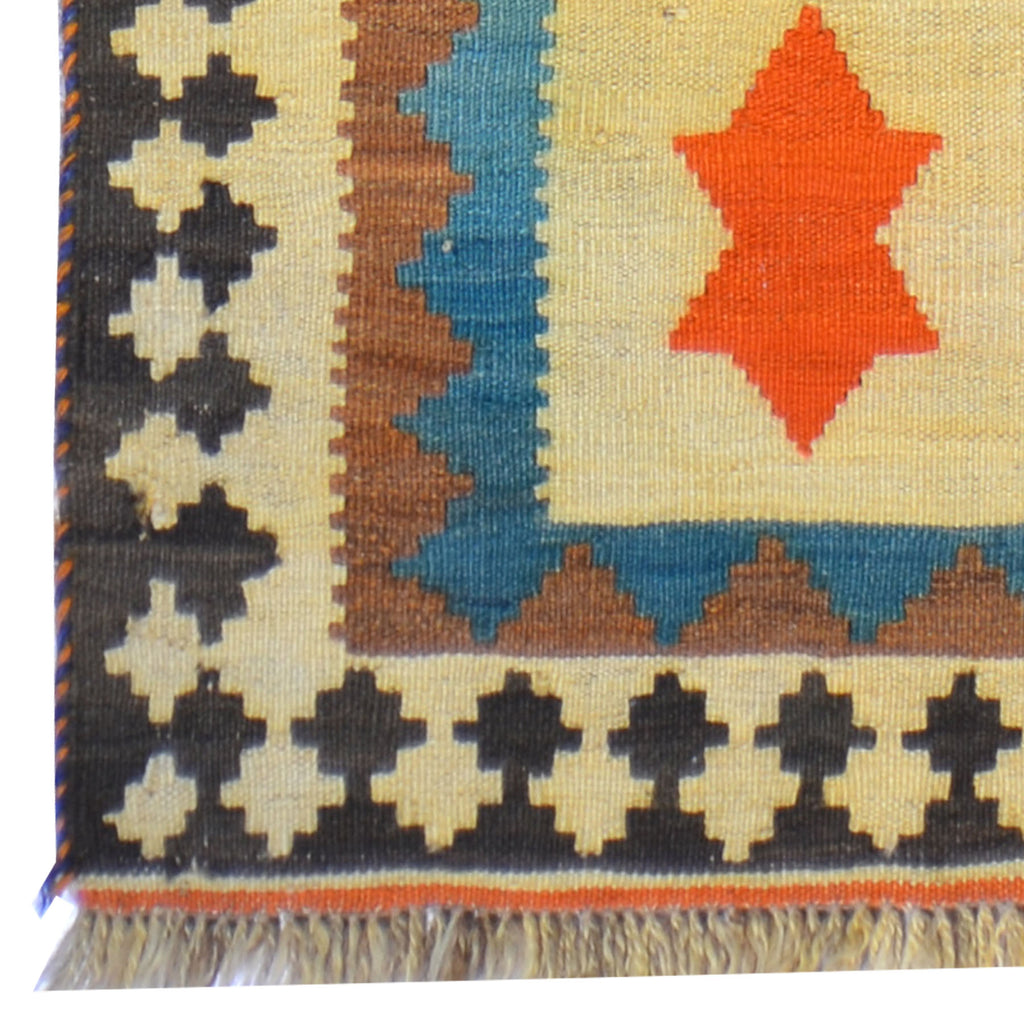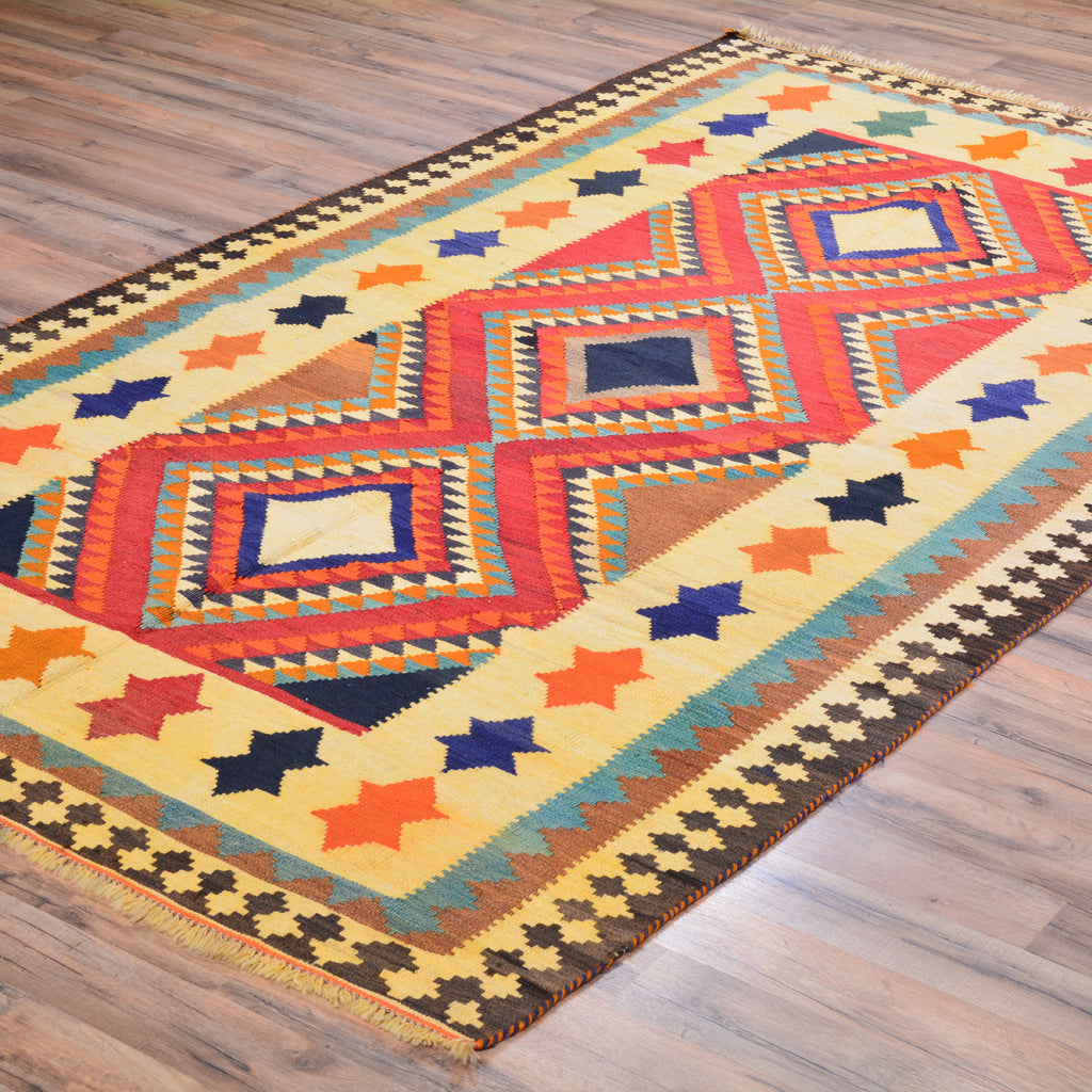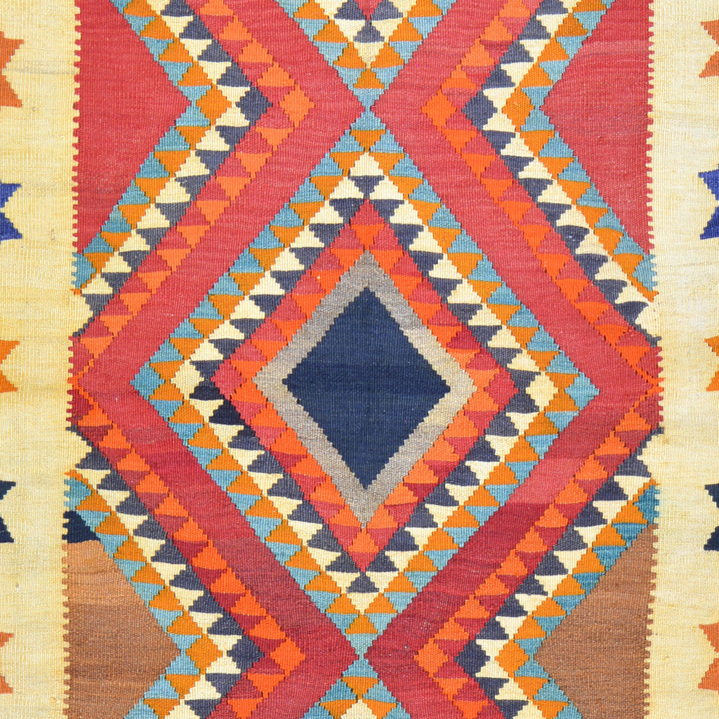 To avoid long vertical slits that can make a Hand-Woven rug not durable, most Kilim rugs are created with diagonal or horizontal patterns. This is why it's very common to see octagons, diamonds and triangular shapes in a Flatweave rug.