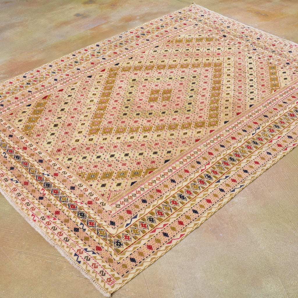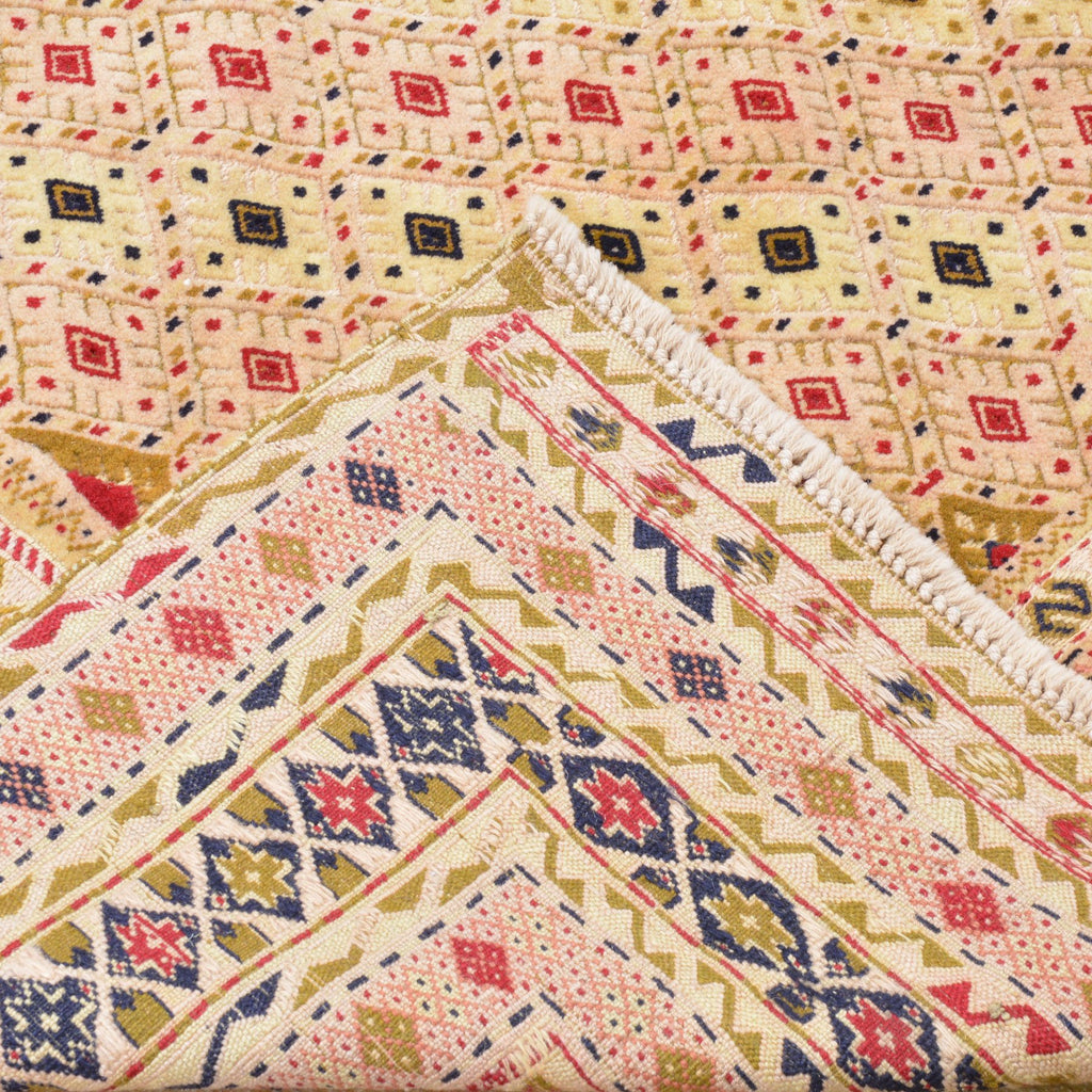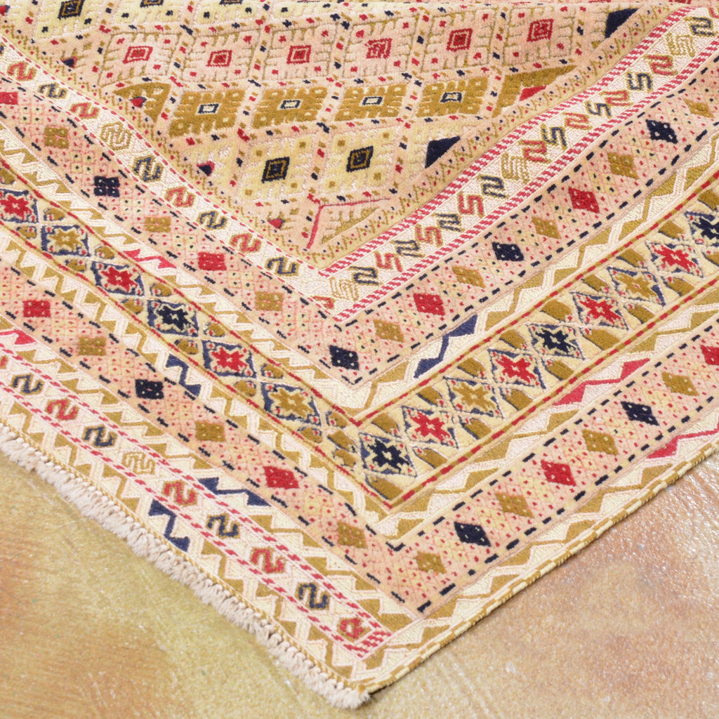 This technique combines both types of weaving, Hand-Knotted and the Soumak technique. This type of weaving uses the Soumak weave to highlight areas of a piled Hand-Knotted rug, creating a unique sturdy texture.