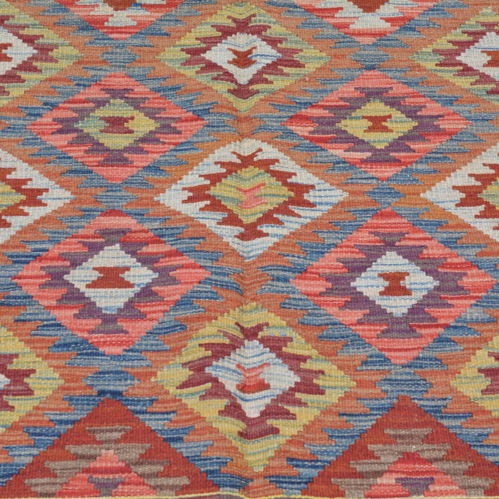To avoid long vertical slits that can make a Hand-Woven rug not durable, most Kilim rugs are created with diagonal or horizontal patterns. This is why it's very common to see octagons, diamonds and triangular shapes in a Flatweave rug.