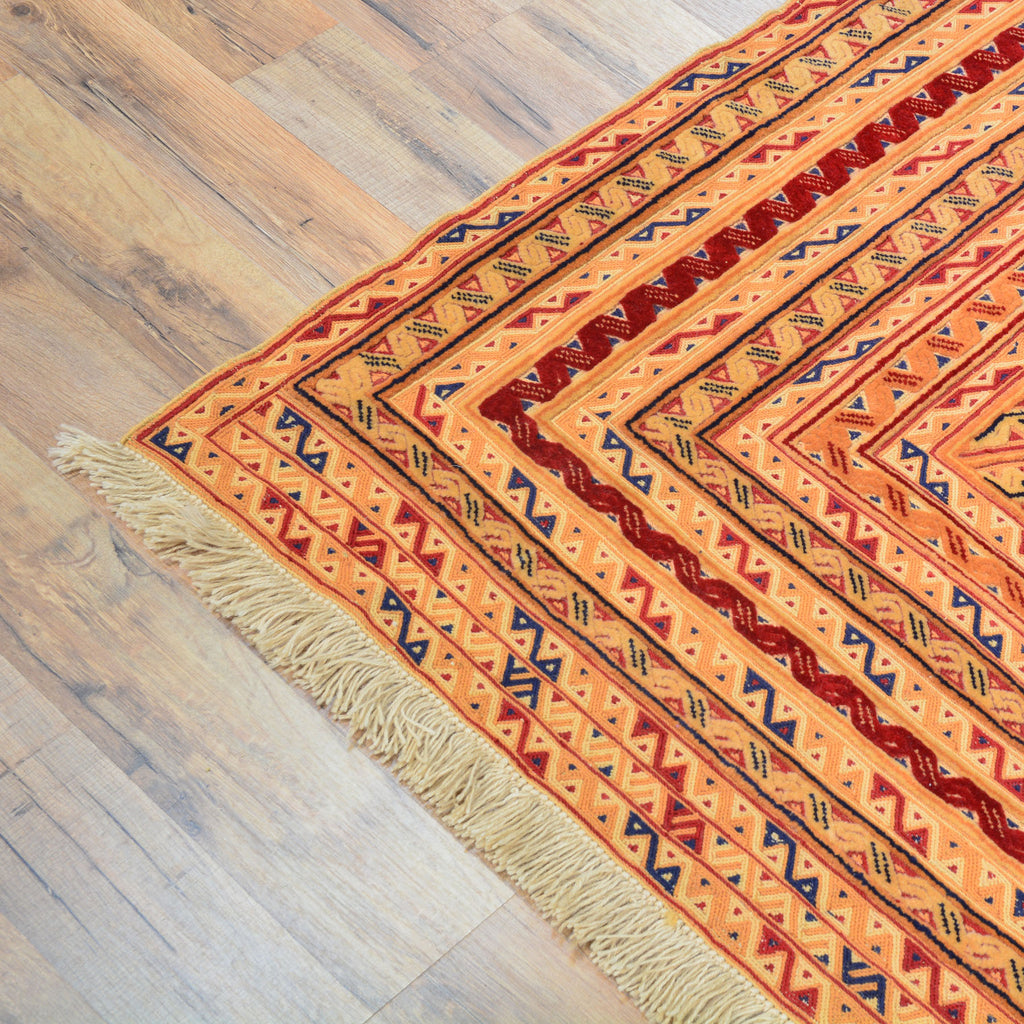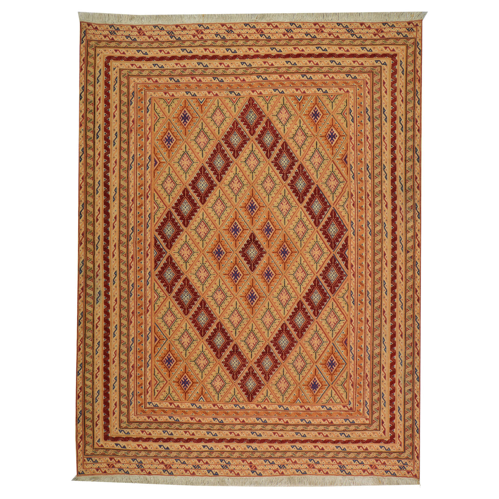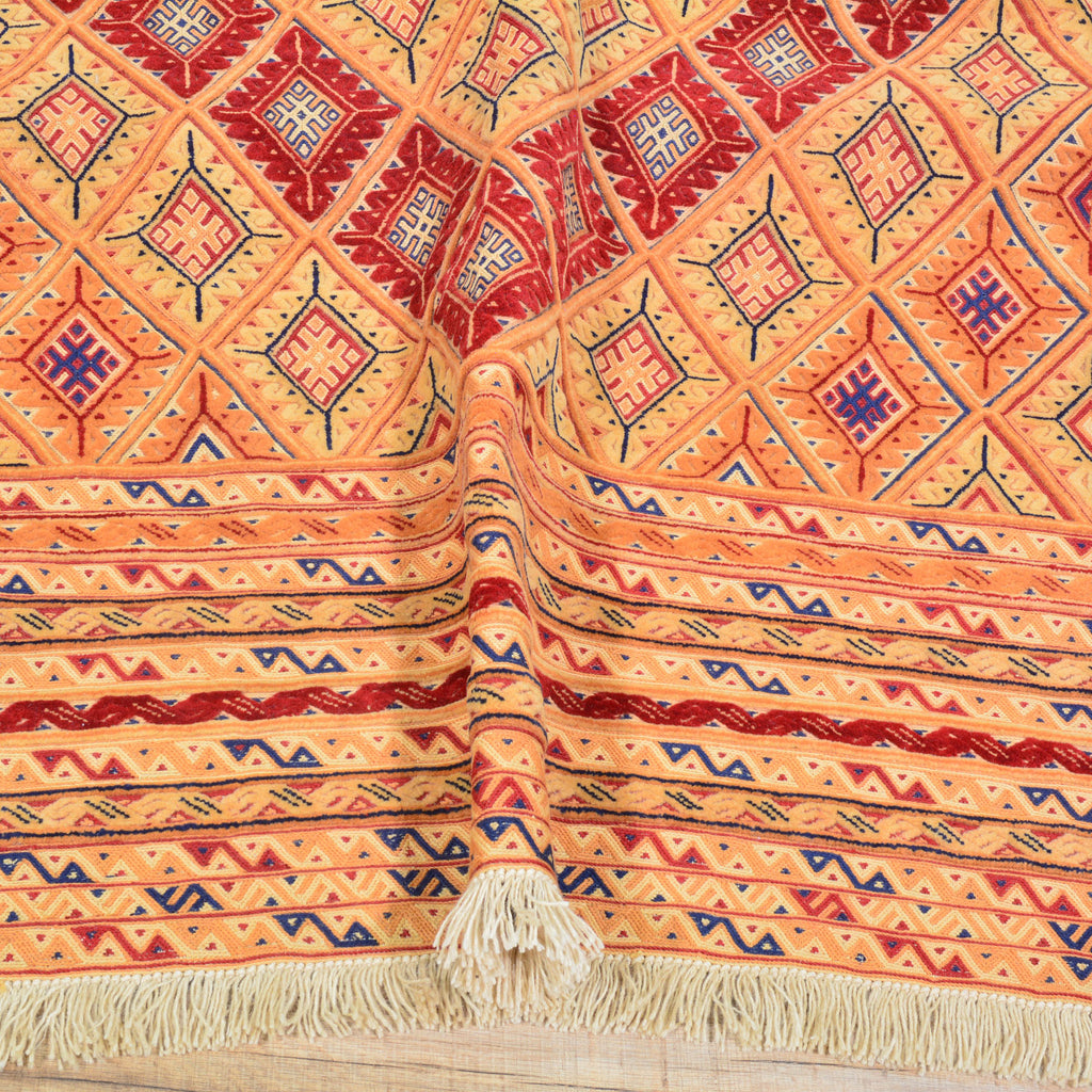 This technique combines both types of weaving, Hand-Knotted and the Soumak technique. This type of weaving uses the Soumak weave to highlight areas of a piled Hand-Knotted rug, creating a unique sturdy texture.