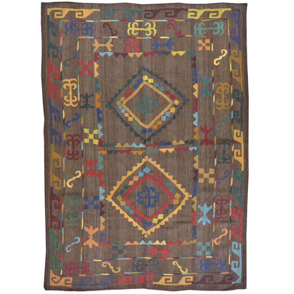 To avoid long vertical slits that can make a Hand-Woven rug not durable, most Kilim rugs are created with diagonal or horizontal patterns. This is why it's very common to see octagons, diamonds and triangular shapes in a Flatweave rug.