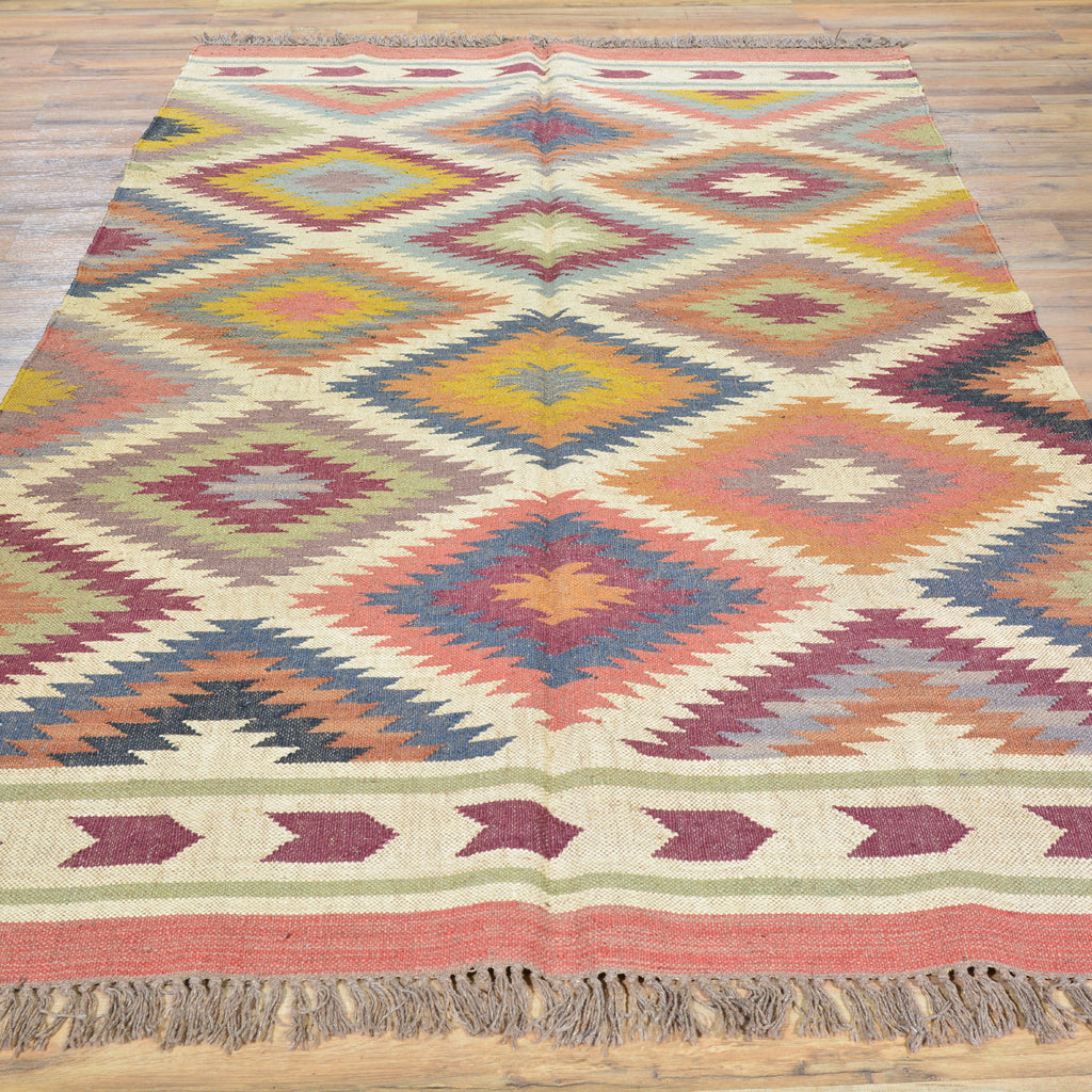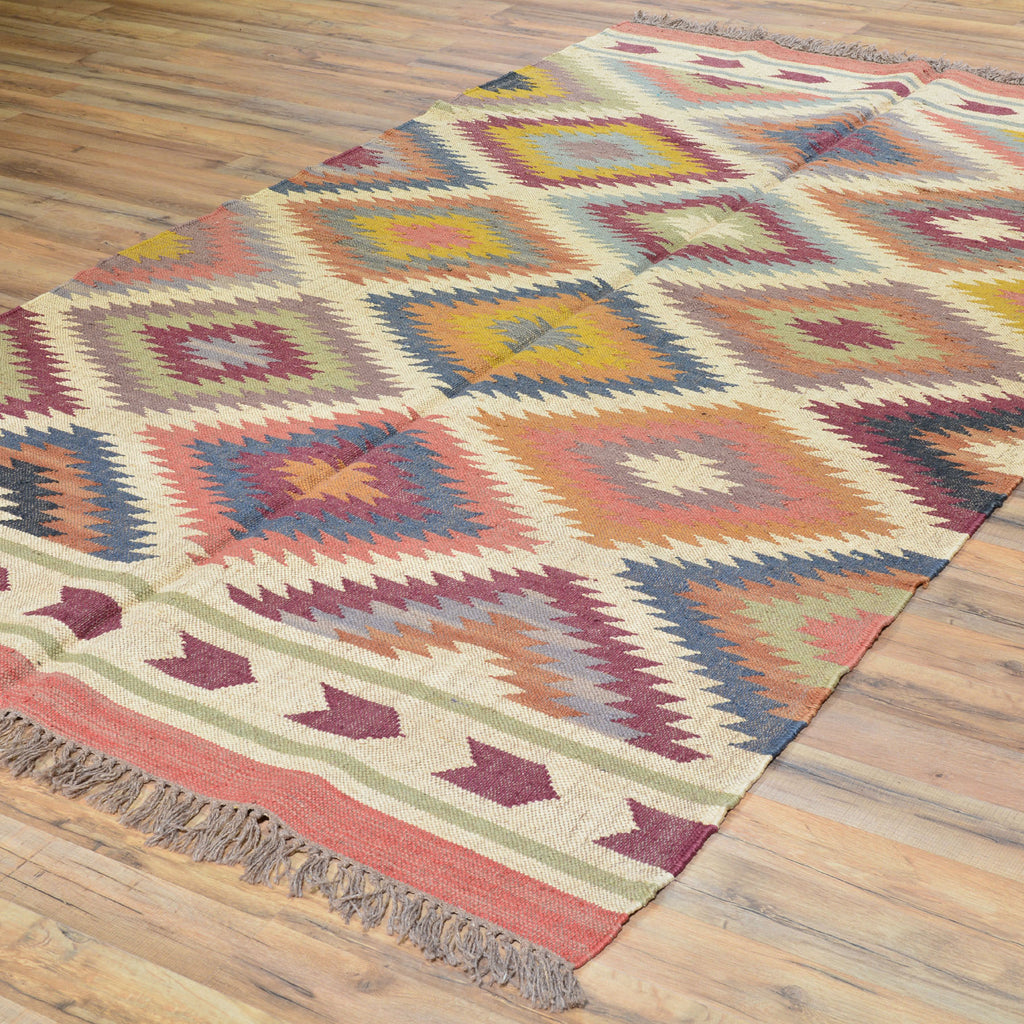 To avoid long vertical slits that can make a Hand-Woven rug not durable, most Kilim rugs are created with diagonal or horizontal patterns. This is why it's very common to see octagons, diamonds and triangular shapes in a Flatweave rug.
