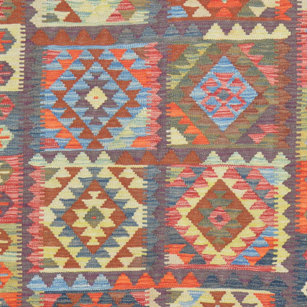 To avoid long vertical slits that can make a Hand-Woven rug not durable, most Kilim rugs are created with diagonal or horizontal patterns. This is why it's very common to see octagons, diamonds and triangular shapes in a Flatweave rug.