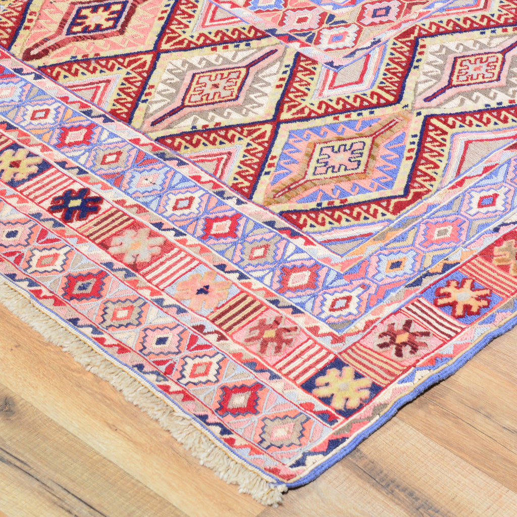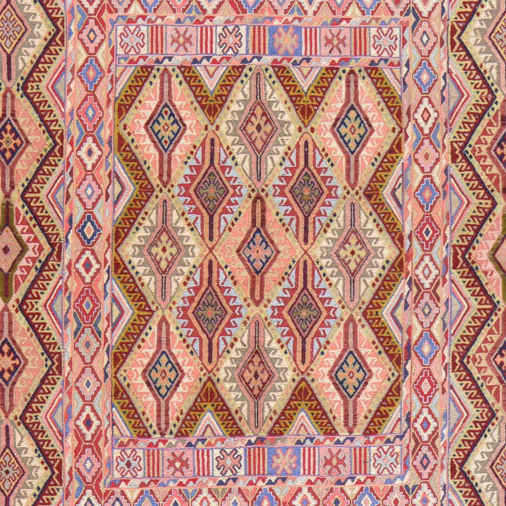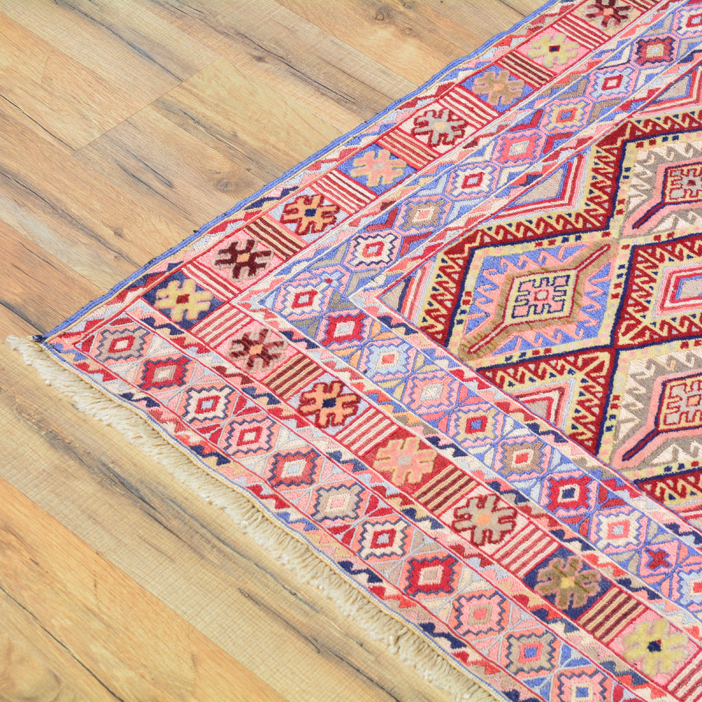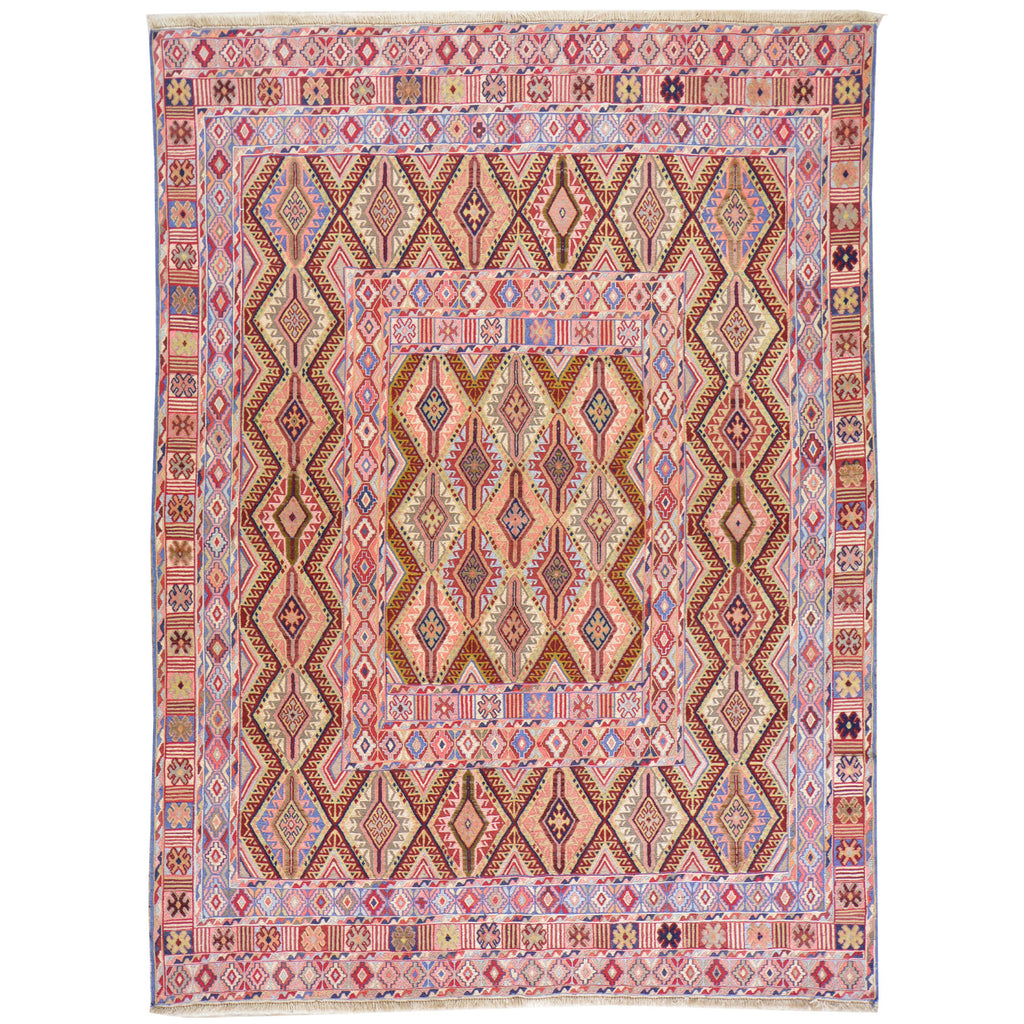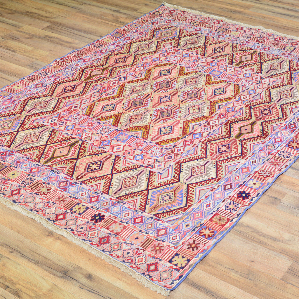 To avoid long vertical slits that can make a Hand-Woven rug not durable, most Kilim rugs are created with diagonal or horizontal patterns. This is why it's very common to see octagons, diamonds and triangular shapes in a Flatweave rug.