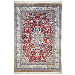 Hand Knotted pictorial Design Silk Handmade Rug (Size 5.7 X 8.1) Cwral-6810  - Vendor