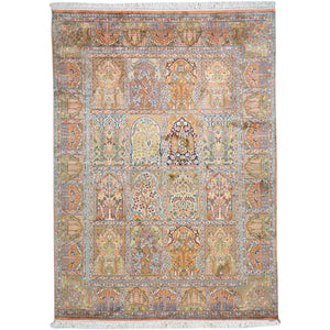 Hand-Knotted Traditional Design Kashmiri Silk Handmade Rug (Size 5.1 X 7.2) Cwral-9216