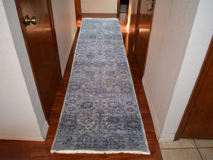 Hand-Knotted Bamboo Silk Runner Modern Handmade 100% Wool (Size 2.5 X 11.6) Brrsf-258