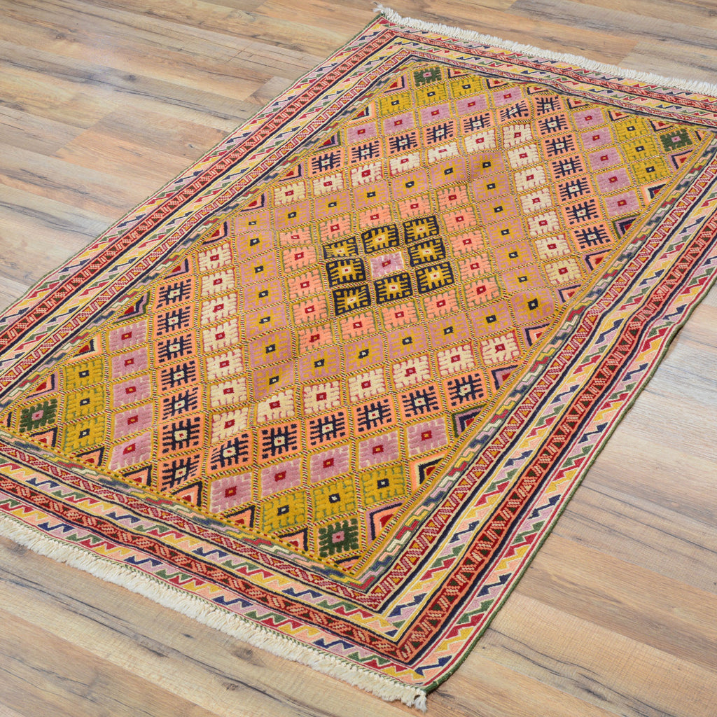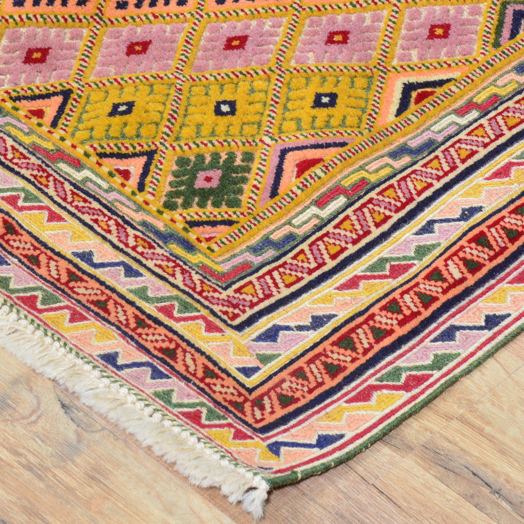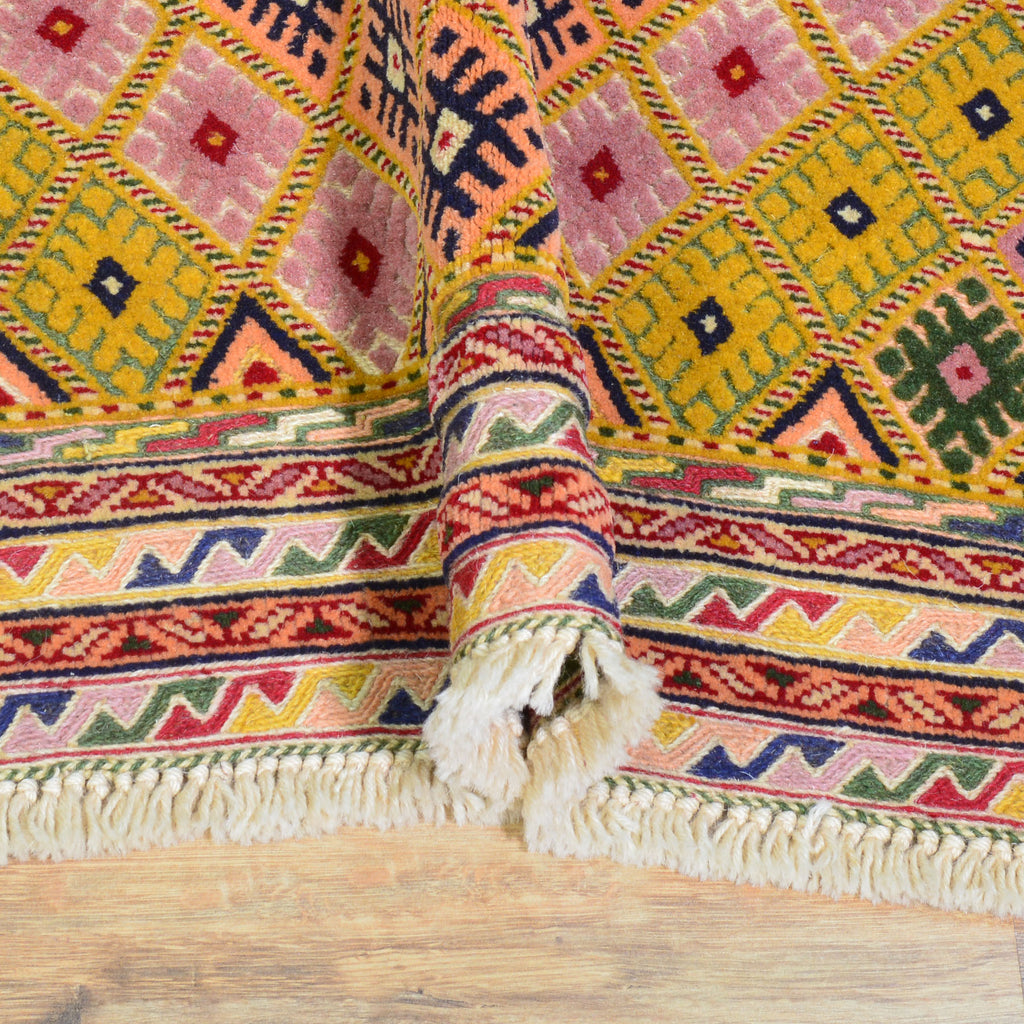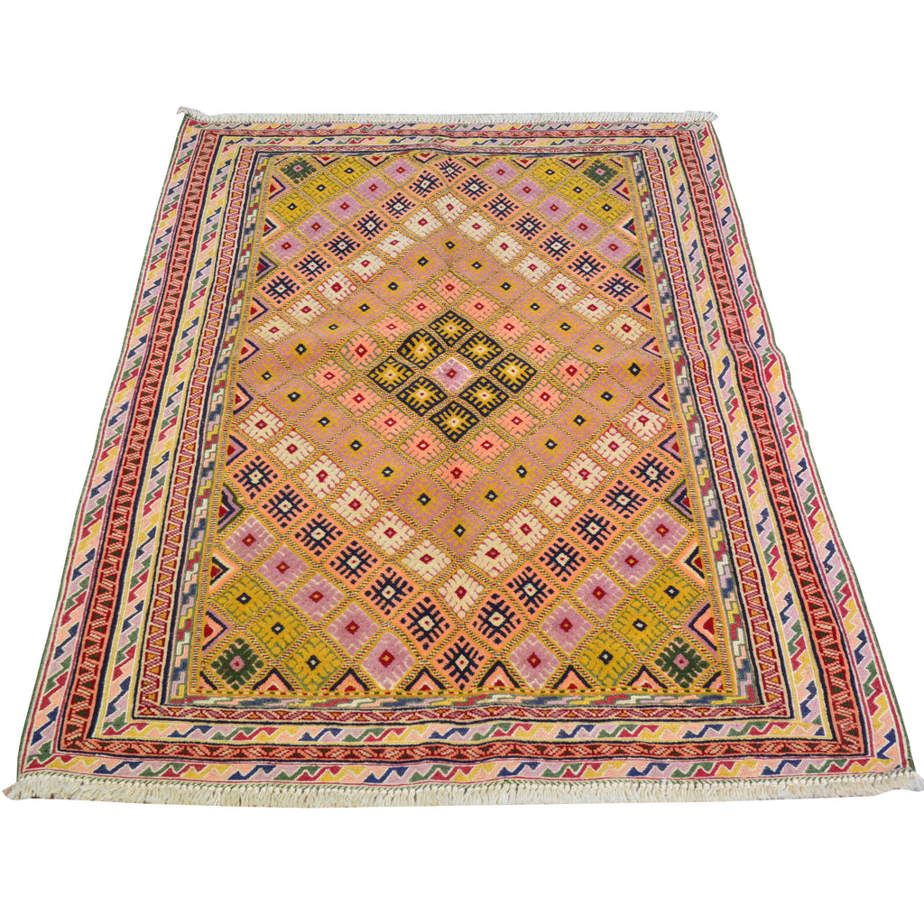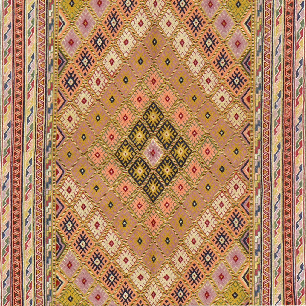 This technique combines both types of weaving, Hand-Knotted and the Soumak technique. This type of weaving uses the Soumak weave to highlight areas of a piled Hand-Knotted rug, creating a unique sturdy texture.