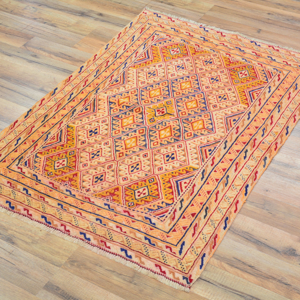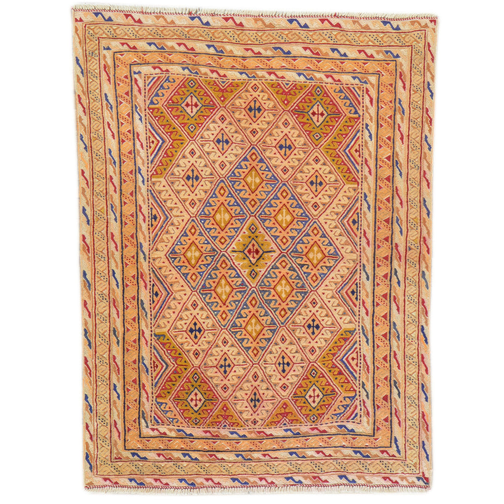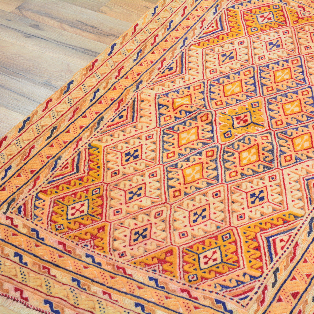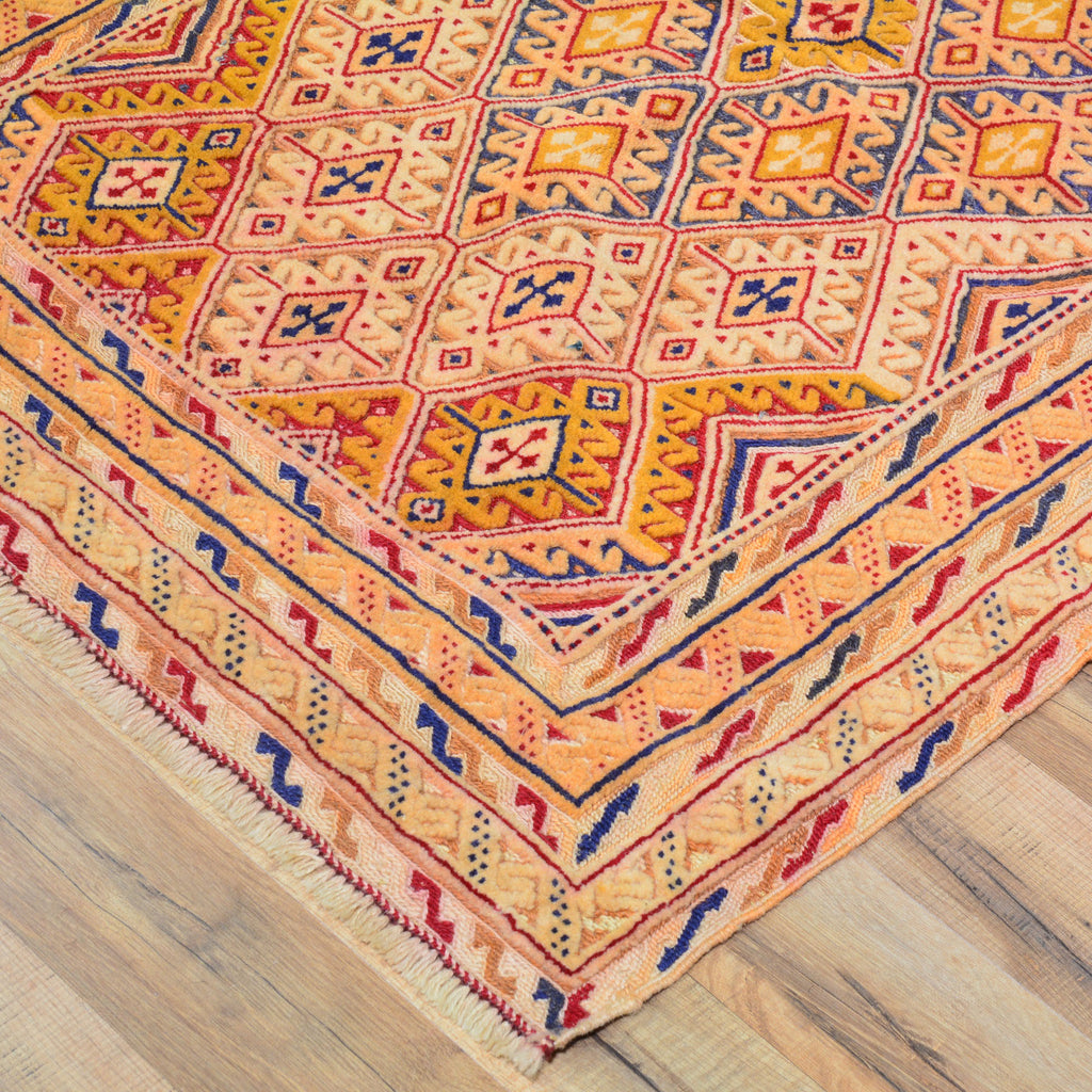 This technique combines both types of weaving, Hand-Knotted and the Soumak technique. This type of weaving uses the Soumak weave to highlight areas of a piled Hand-Knotted rug, creating a unique sturdy texture.