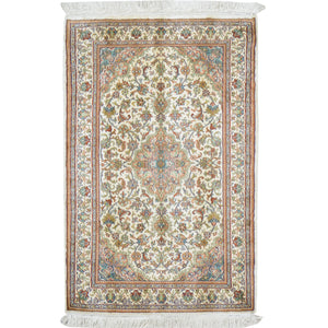 Hand-Knotted Kashmiri Silk Traditional Design Handmade Rug (Size 2.7 X 4.0) Cwral-11136