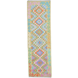 Hand-Woven Reversible Momana Kilim Handmade Wool Rug (Size 2.8 X 10.3) Cwral-10683