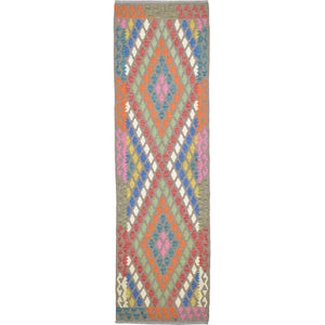 Hand-Woven Reversible Momana Kilim Handmade Wool Rug (Size 2.11 X 9.5) Cwral-10677