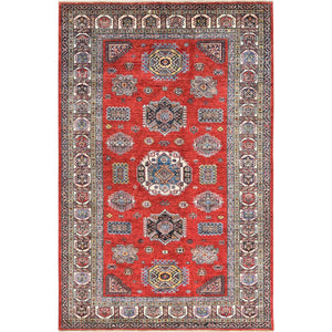 Hand-Knotted Caucasian Design Kazak Wool Handmade Rug (Size 4.2 X 5.6) Cwral-8877