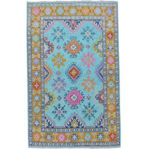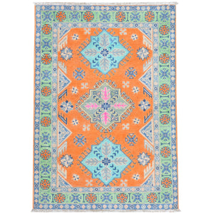 Hand-Knotted Handmade Colorful Geometric Design Wool Rug (Size 4.10 X 6.6) Cwral-7461