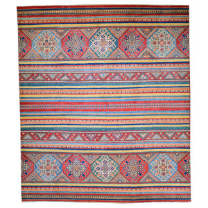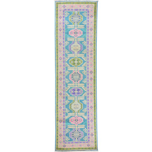 Hand-Knotted Handmade Colorful Geometric Design Wool Rug (Size 2.7 X 9.8) Cwral-7386