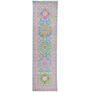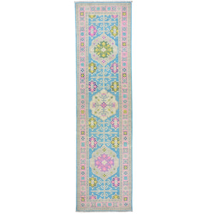 Hand-Knotted Handmade Colorful Geometric Design Wool Rug (Size 2.7 X 9.5) Cwral-7401