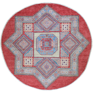 Hand-Knotted Round Caucasian Design Kazak Wool Rug (Size 6.0 X 6.0) Cwral-846