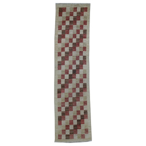 Hand-Knotted Peshawar Gabbeh Checker Design Oriental Handmade Rug (Size 2.6X9.7) Cwral-10155
