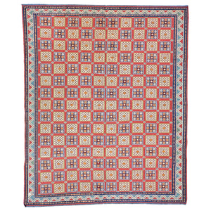 Hand-Knotted/Soumak Multiple Weave Afghan Design Rug (Size 6.8 X 8.9) Brral-4128