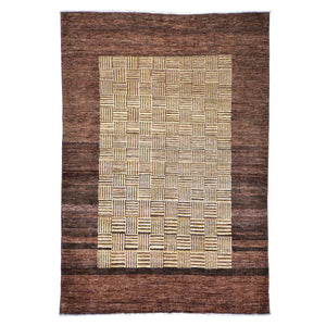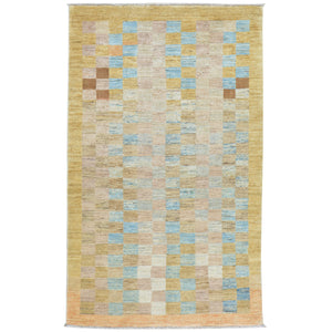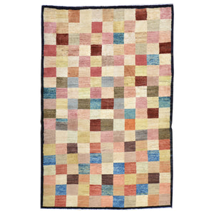 Hand-Knotted Oriental Peshawar Checker Design Gabbeh Wool Rug (Size 3.2 X 5.0) Brral-444