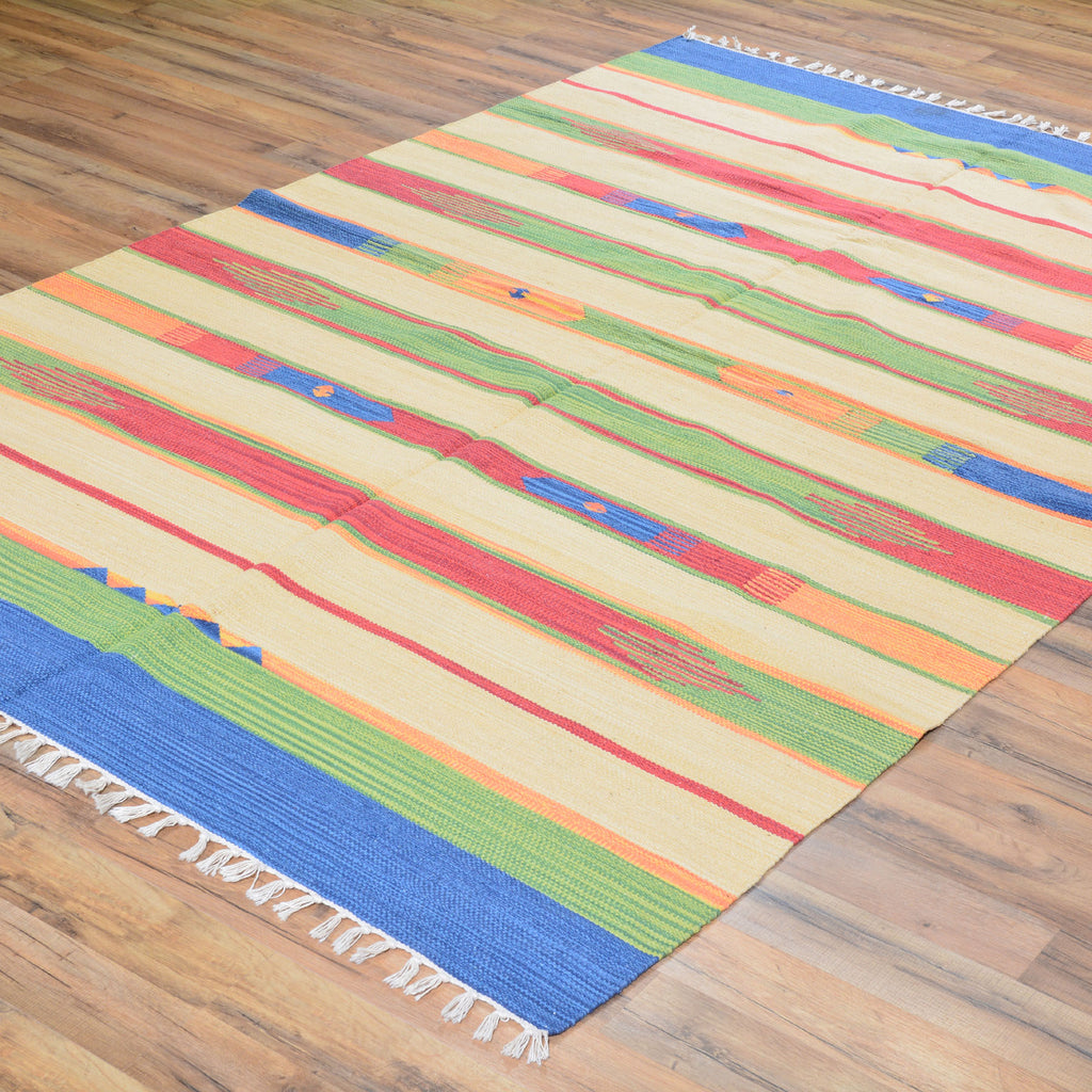 To avoid long vertical slits that can make a Hand-Woven rug not durable, most Kilim rugs are created with diagonal or horizontal patterns. This is why it's very common to see octagons, diamonds and triangular shapes in a Flatweave rug.