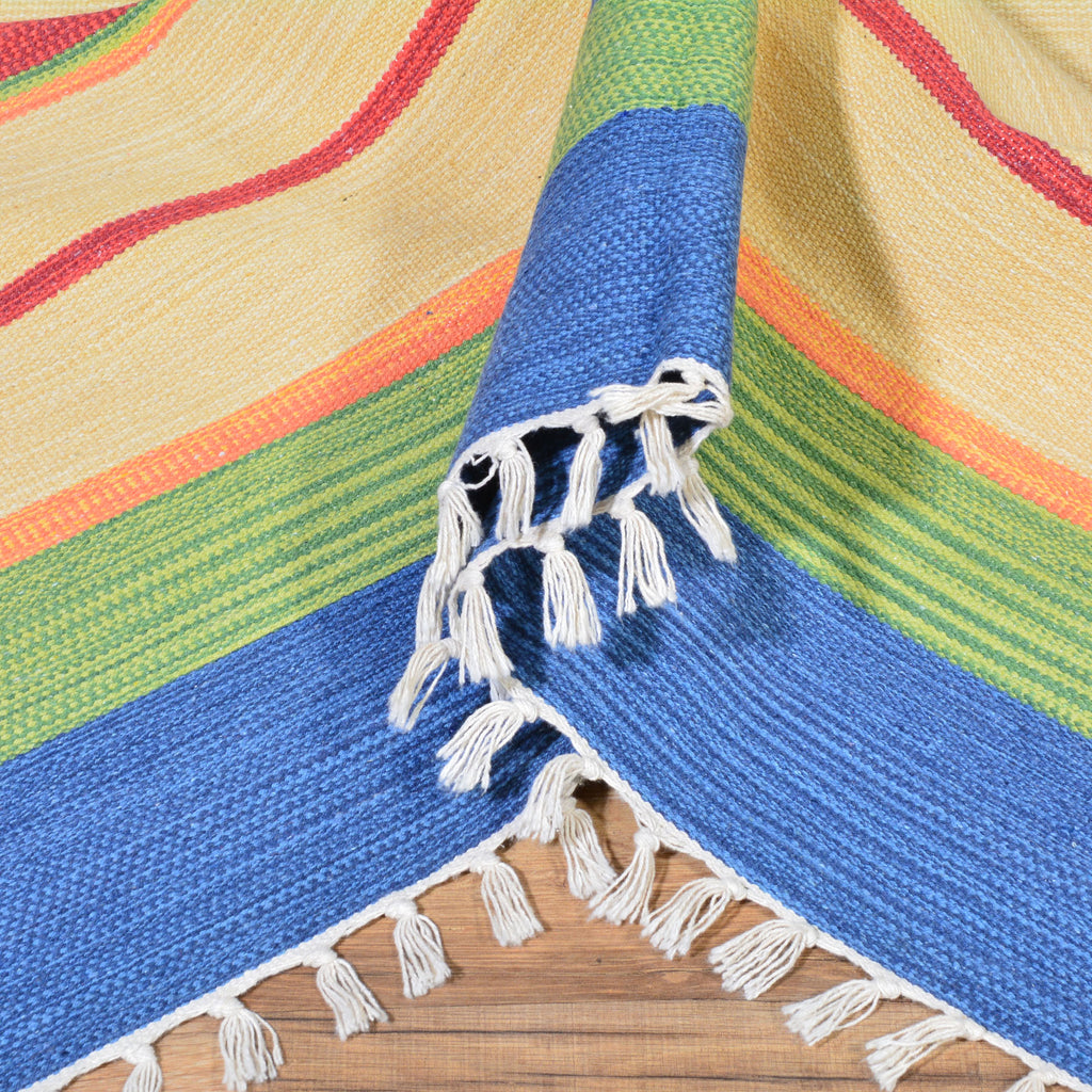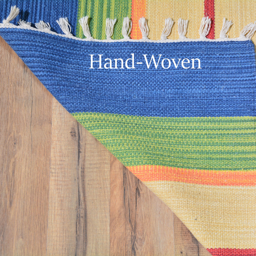 A Hand-Woven rug can also be called a Kilim, or Flatweave and it uses what is called a "Slit-weave" technique. The Slit-weave technique uses only a warp yarn as the foundation, allowing the weaver to build the rug by interlacing the yarn, as the weft.
