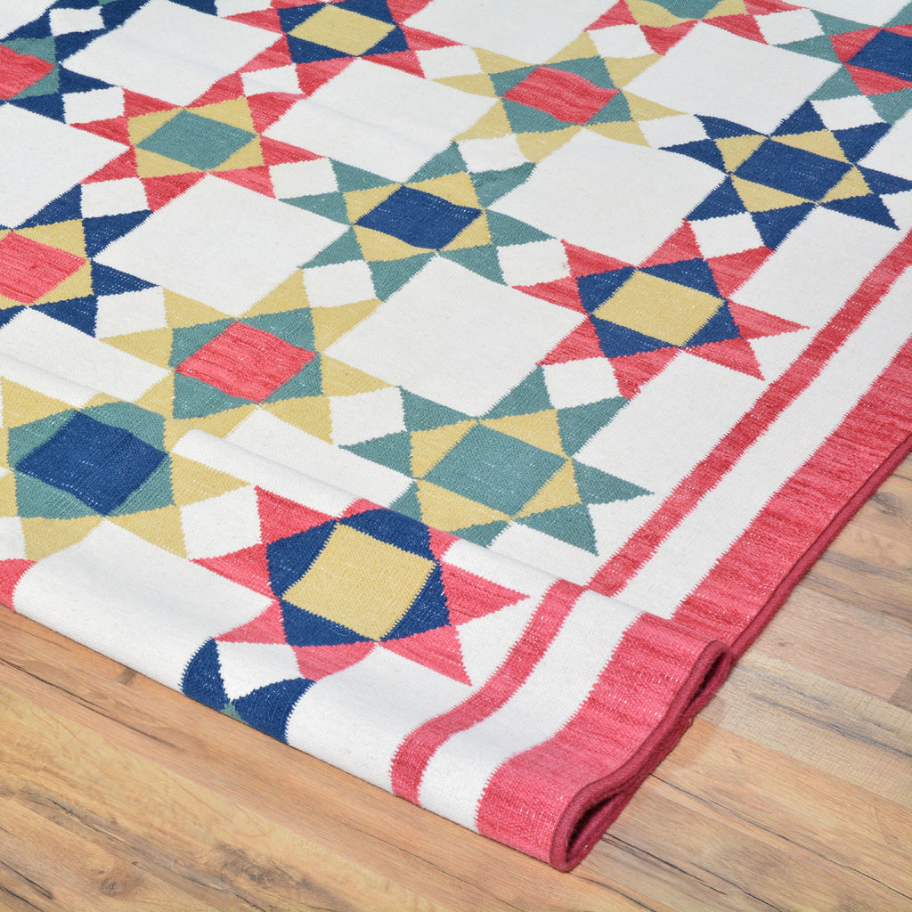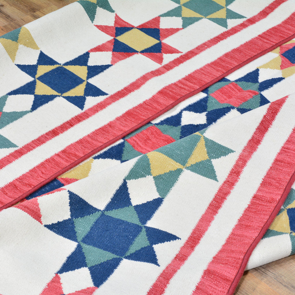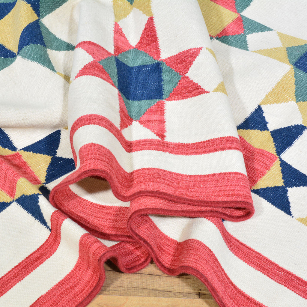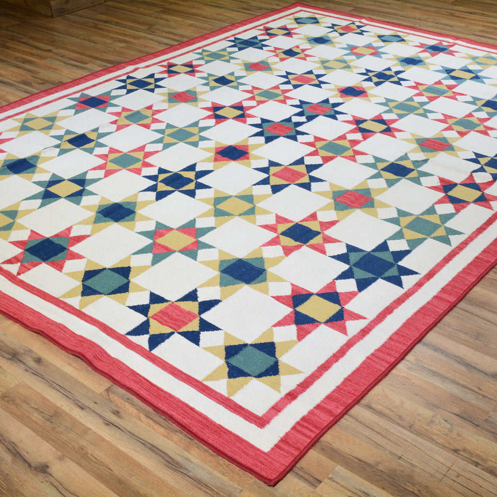 To avoid long vertical slits that can make a Hand-Woven rug not durable, most Kilim rugs are created with diagonal or horizontal patterns. This is why it's very common to see octagons, diamonds and triangular shapes in a Flatweave rug.