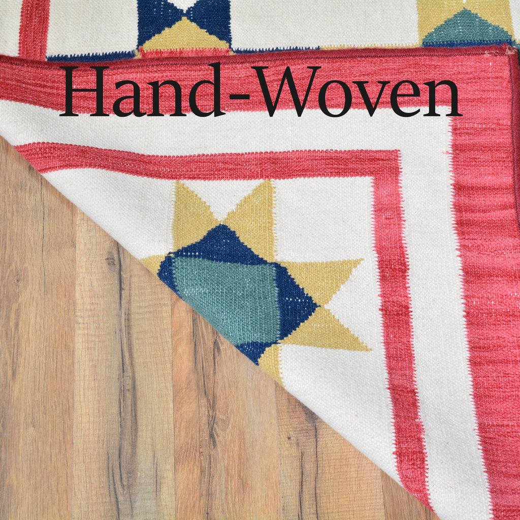 A Hand-Woven rug can also be called a Kilim, or Flatweave and it uses what is called a "Slit-weave" technique. The Slit-weave technique uses only a warp yarn as the foundation, allowing the weaver to build the rug by interlacing the yarn, as the weft.