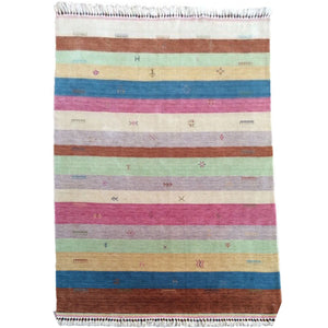Hand-Loomed Striped Design Gabbeh Wool Rug (Size 5.6 X 8.5) Brrsf-768