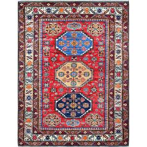 Hand-Knotted Traditional Ersari Kazak Design Handmade Wool Rug (Size 4.2 X 6.1) Cwral-11649