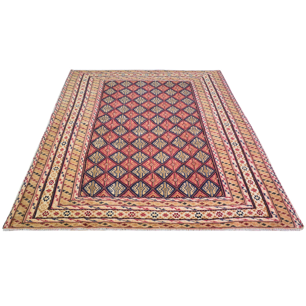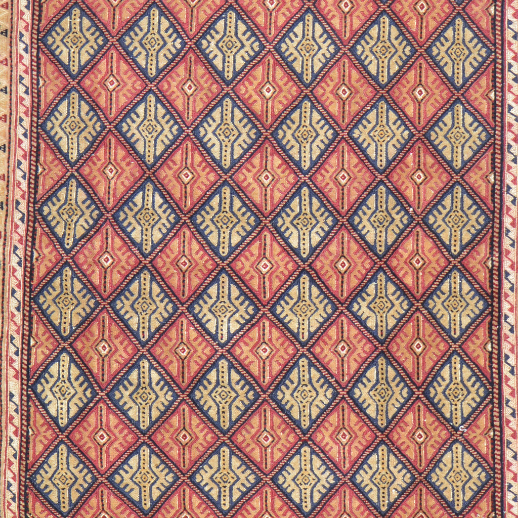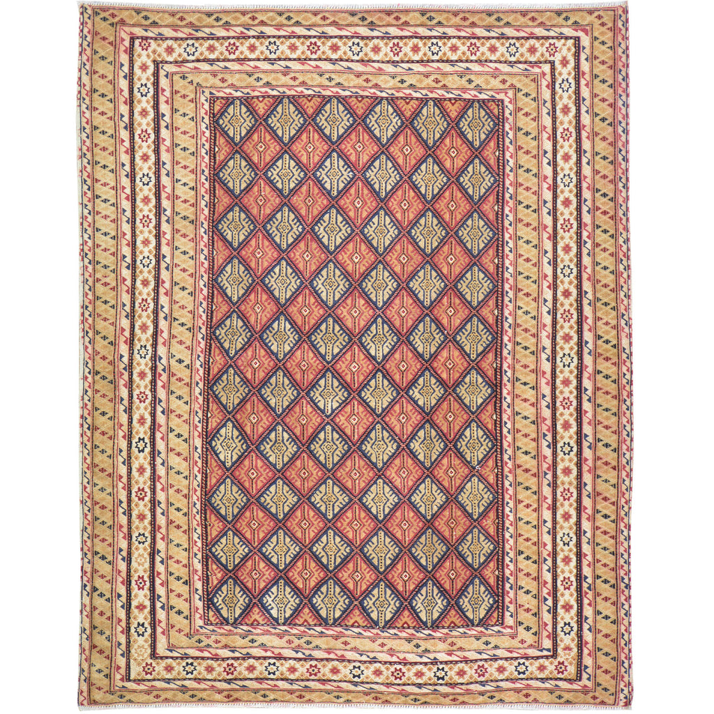 To avoid long vertical slits that can make a Hand-Woven rug not durable, most Kilim rugs are created with diagonal or horizontal patterns. This is why it's very common to see octagons, diamonds and triangular shapes in a Flatweave rug.