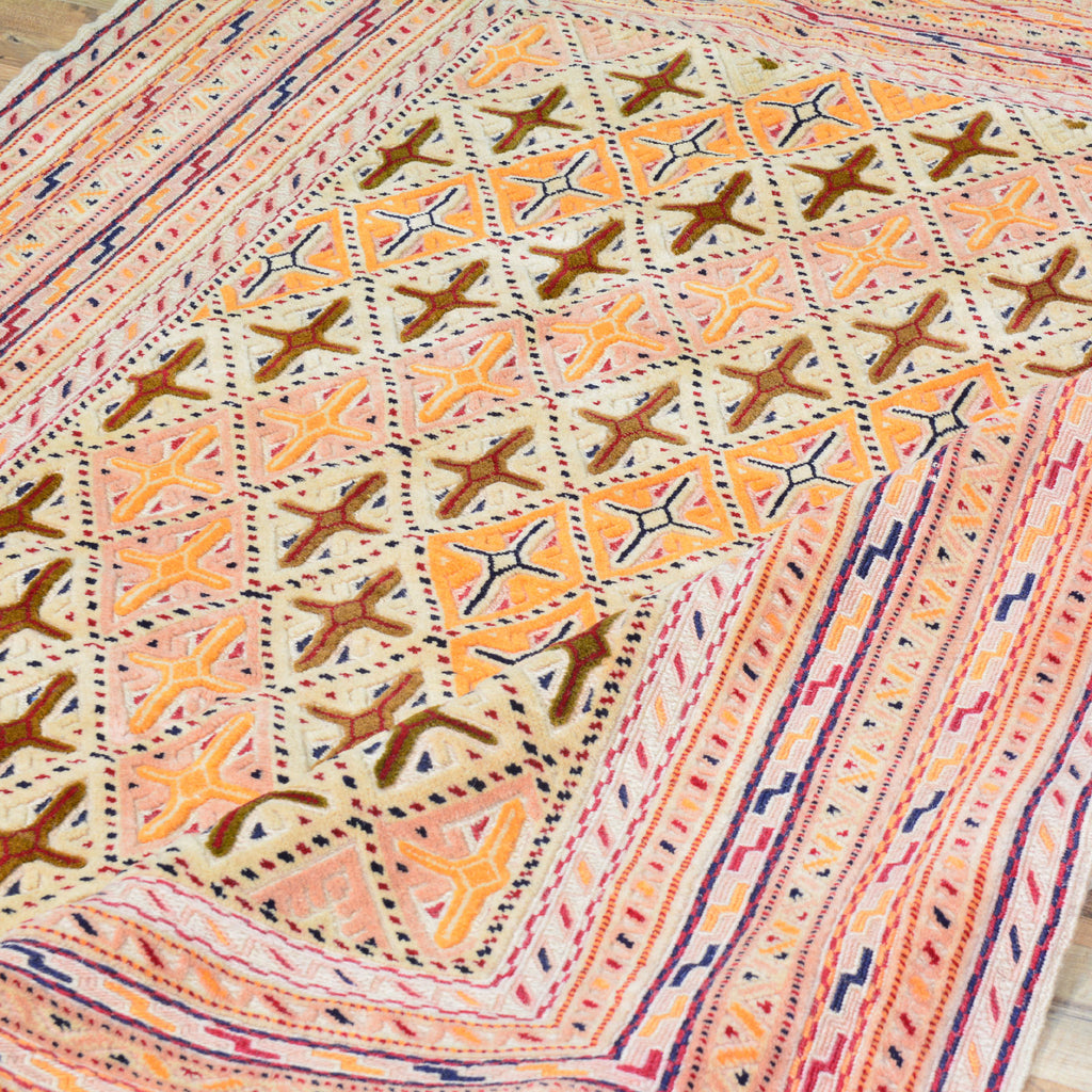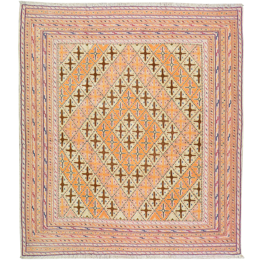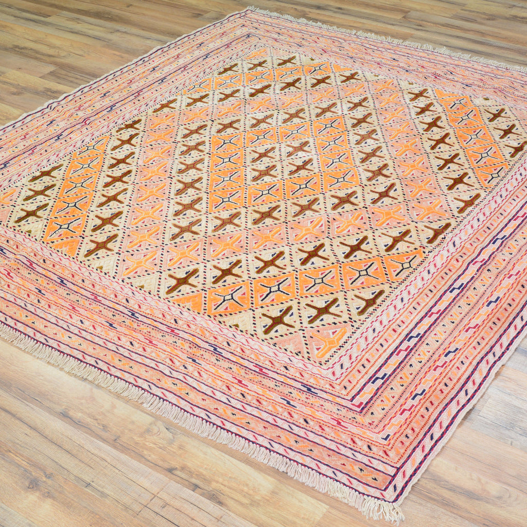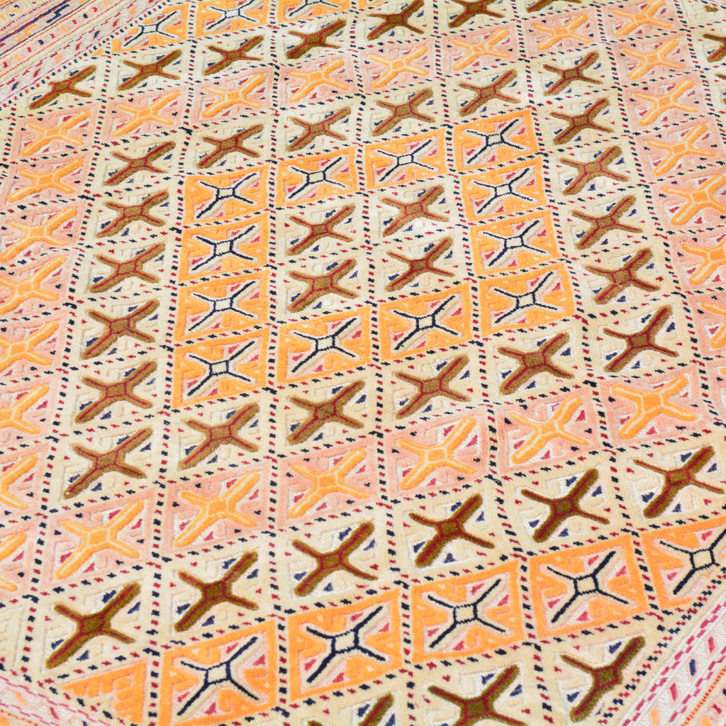 To avoid long vertical slits that can make a Hand-Woven rug not durable, most Kilim rugs are created with diagonal or horizontal patterns. This is why it's very common to see octagons, diamonds and triangular shapes in a Flatweave rug.