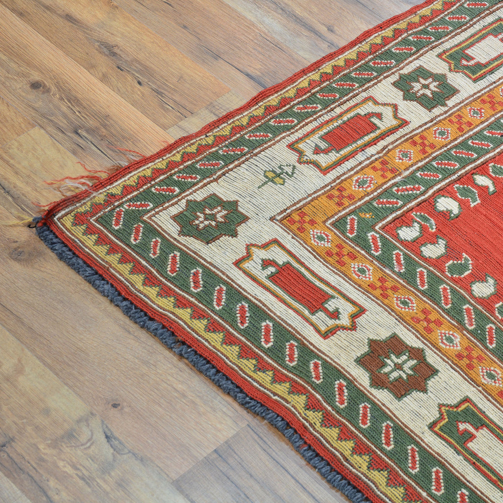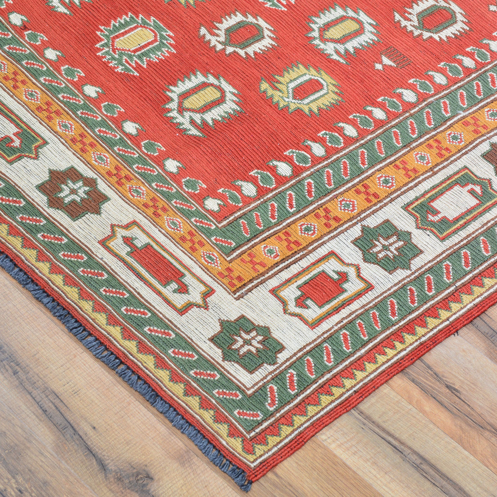 To avoid long vertical slits that can make a Hand-Woven rug not durable, most Kilim rugs are created with diagonal or horizontal patterns. This is why it's very common to see octagons, diamonds and triangular shapes in a Flatweave rug.