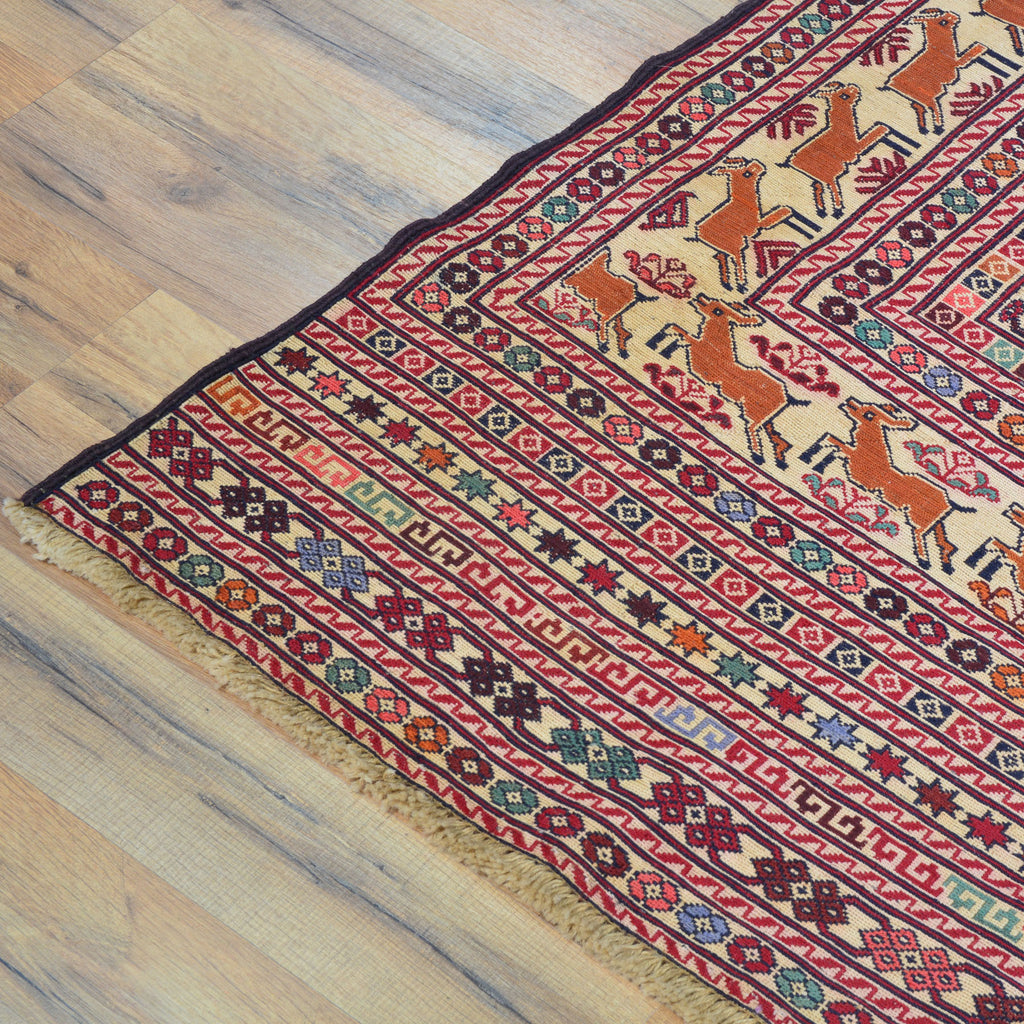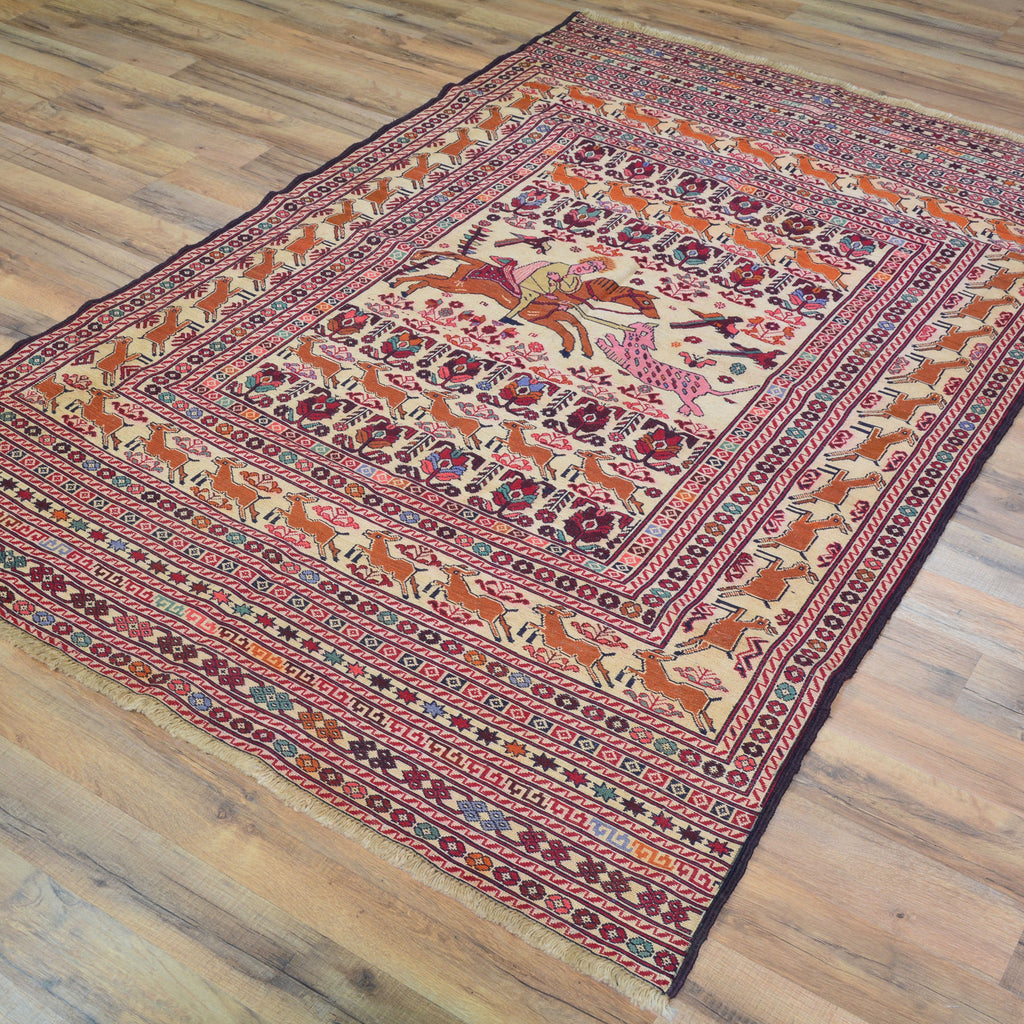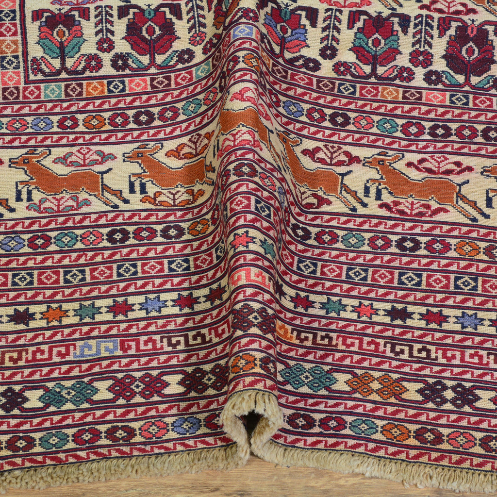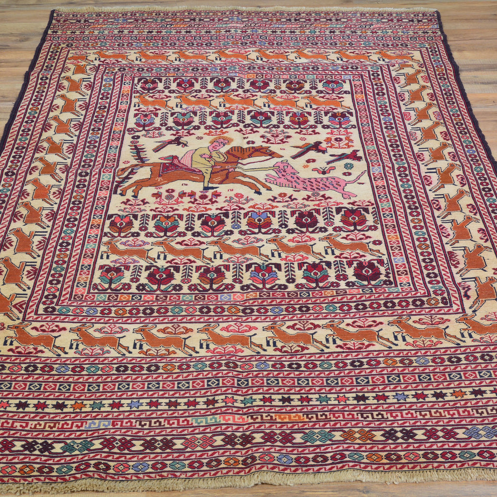 Hand-Woven Afghan Tribal Pictorial Sumak Wool Oriental Rug (Size 4.1 X 5.10) Cwral-10227