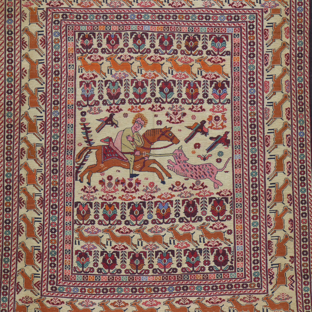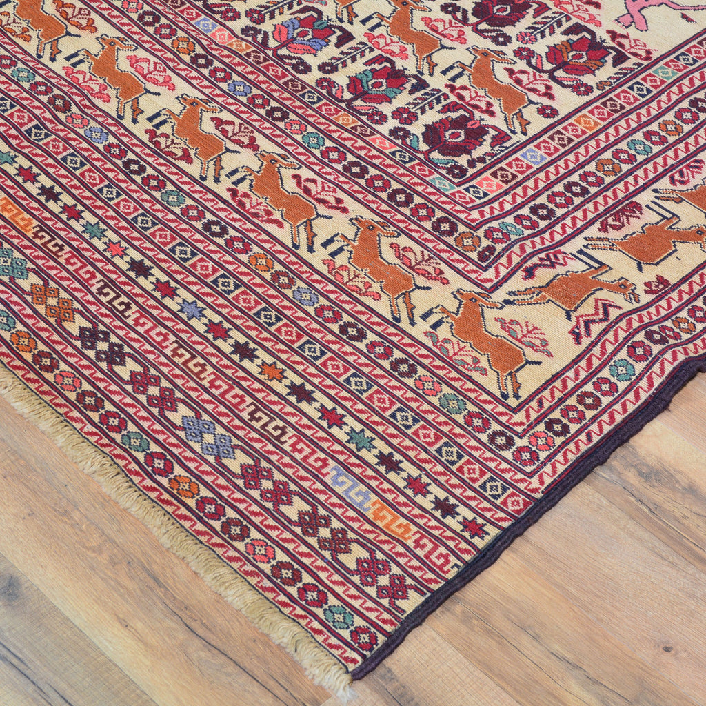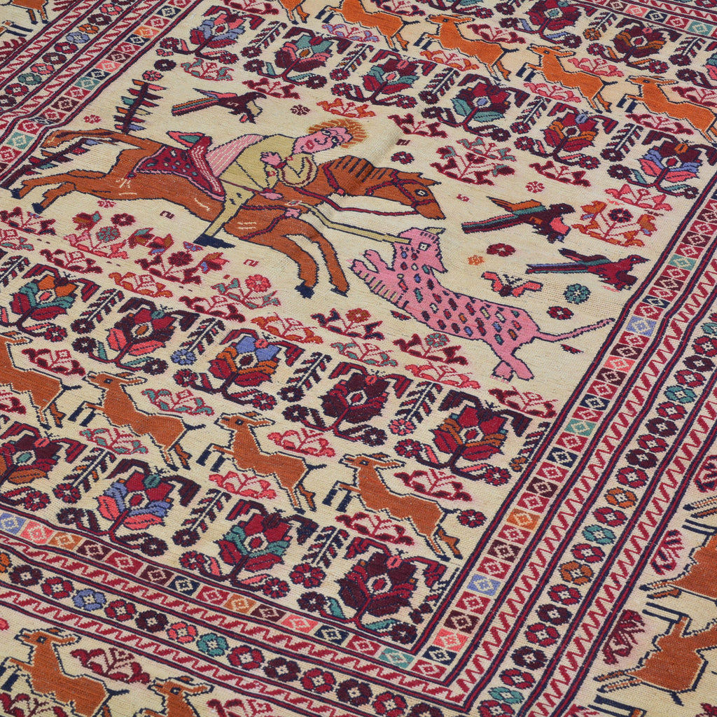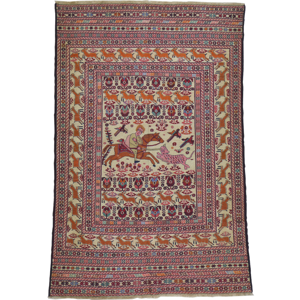 Hand-Woven Afghan Tribal Pictorial Sumak Wool Oriental Rug (Size 4.1 X 5.10) Cwral-10227