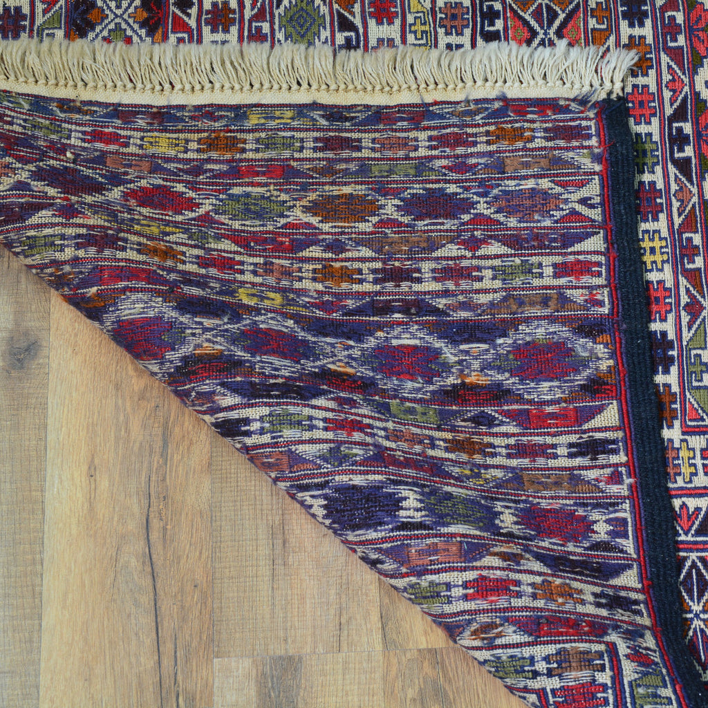 To avoid long vertical slits that can make a Hand-Woven rug not durable, most Kilim rugs are created with diagonal or horizontal patterns. This is why it's very common to see octagons, diamonds and triangular shapes in a Flatweave rug.