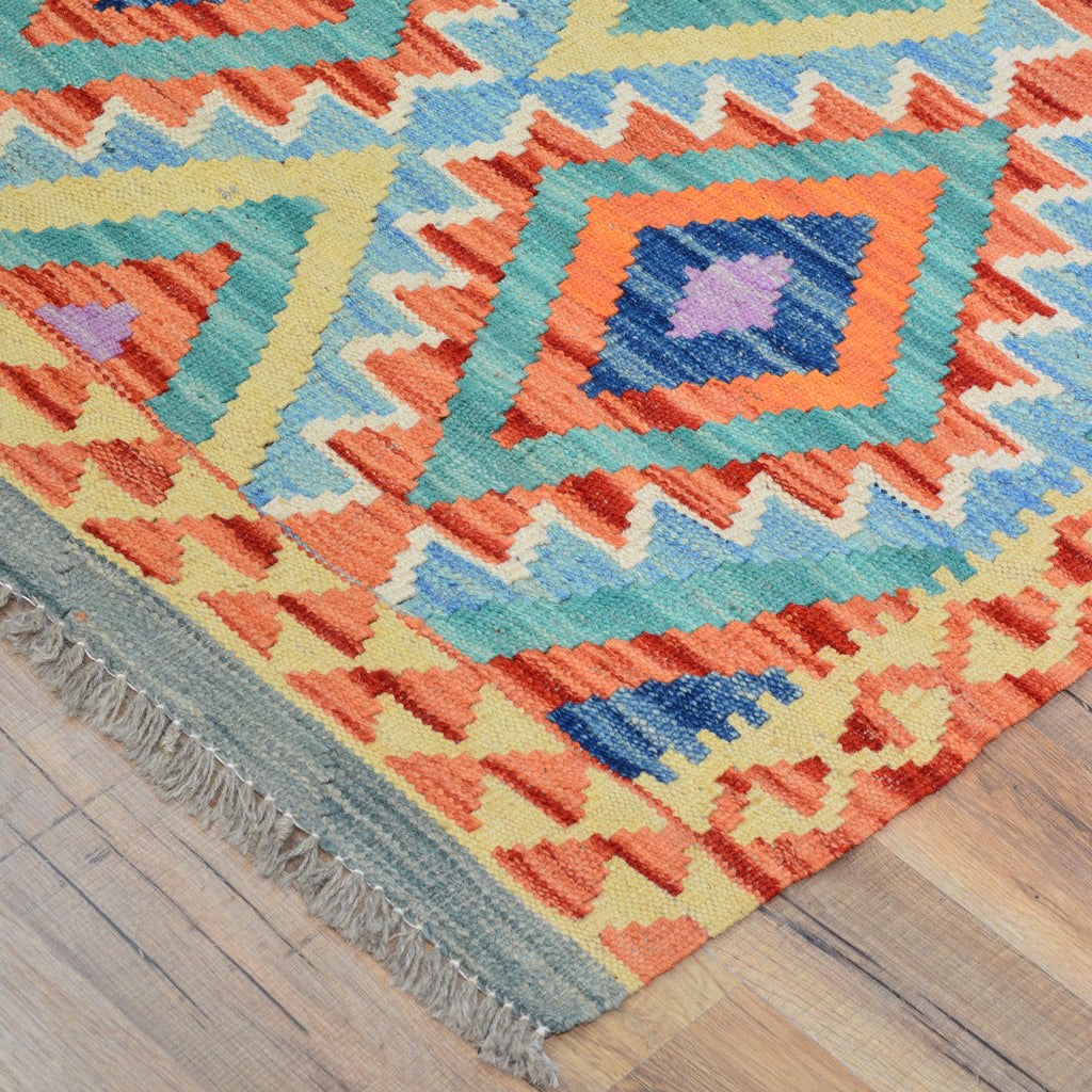 To avoid long vertical slits that can make a Hand-Woven rug not durable, most Kilim rugs are created with diagonal or horizontal patterns. This is why it's very common to see octagons, diamonds and triangular shapes in a Flatweave rug.