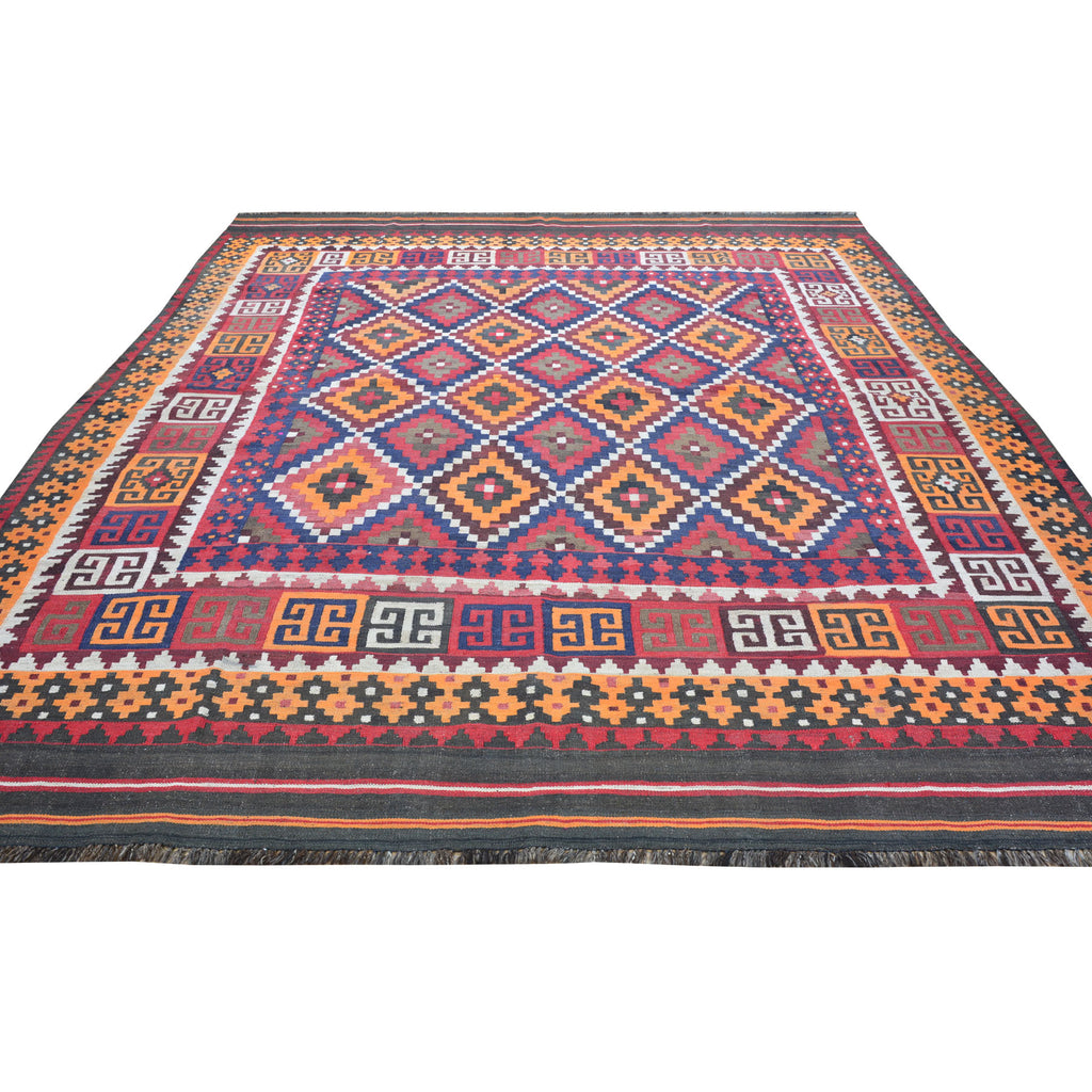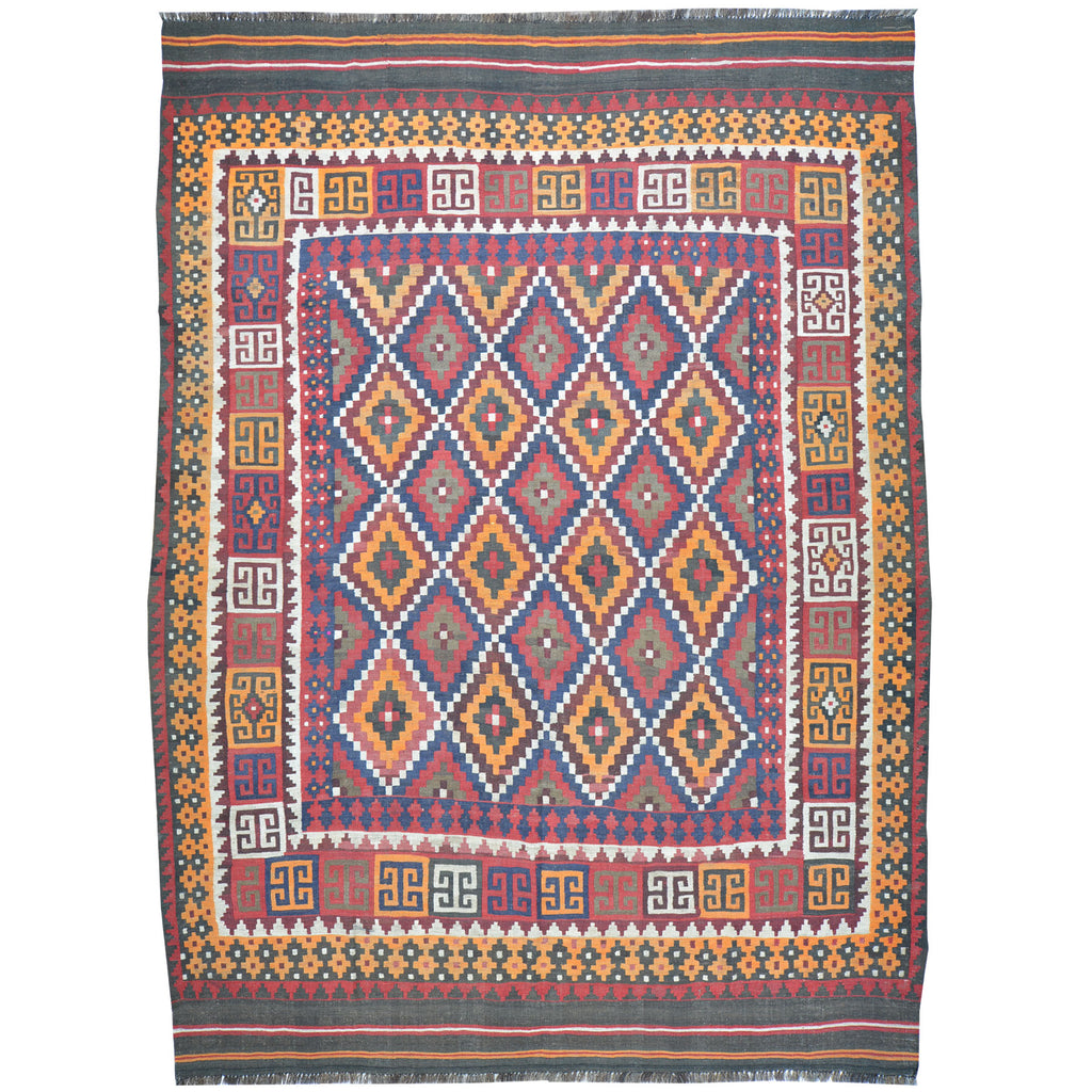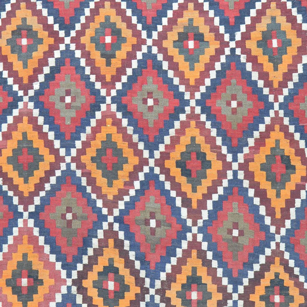 To avoid long vertical slits that can make a Hand-Woven rug not durable, most Kilim rugs are created with diagonal or horizontal patterns. This is why it's very common to see octagons, diamonds and triangular shapes in a Flatweave rug.
