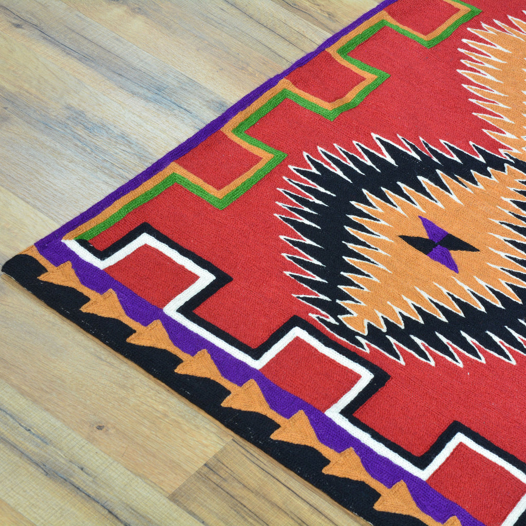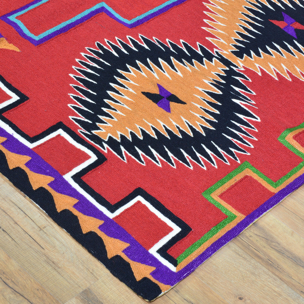 Because the chain stitch is not a weaving technique, curves and other naturally flowing designs are advantages over typical woven rugs. The experience and creative mind of an artisan are the few limitations to the beauty and intrigue of a chain-stitched rug.