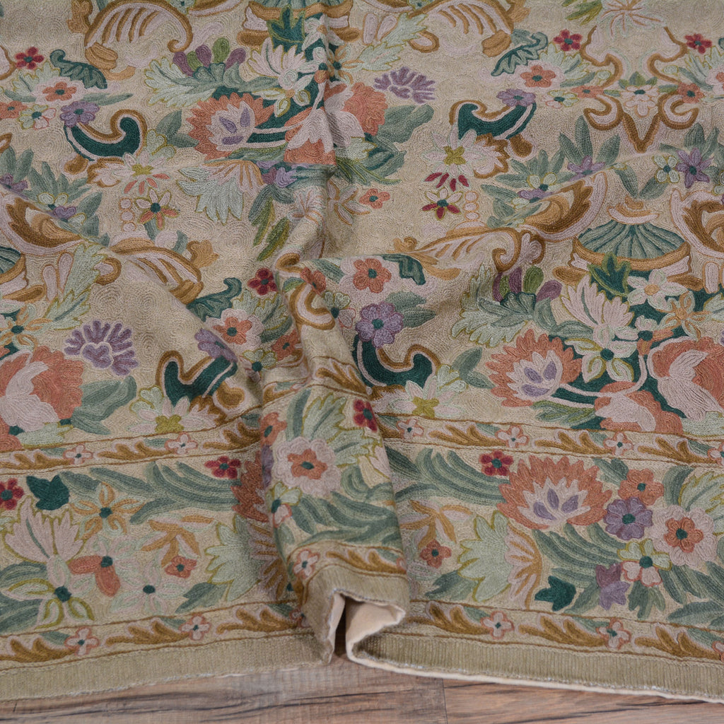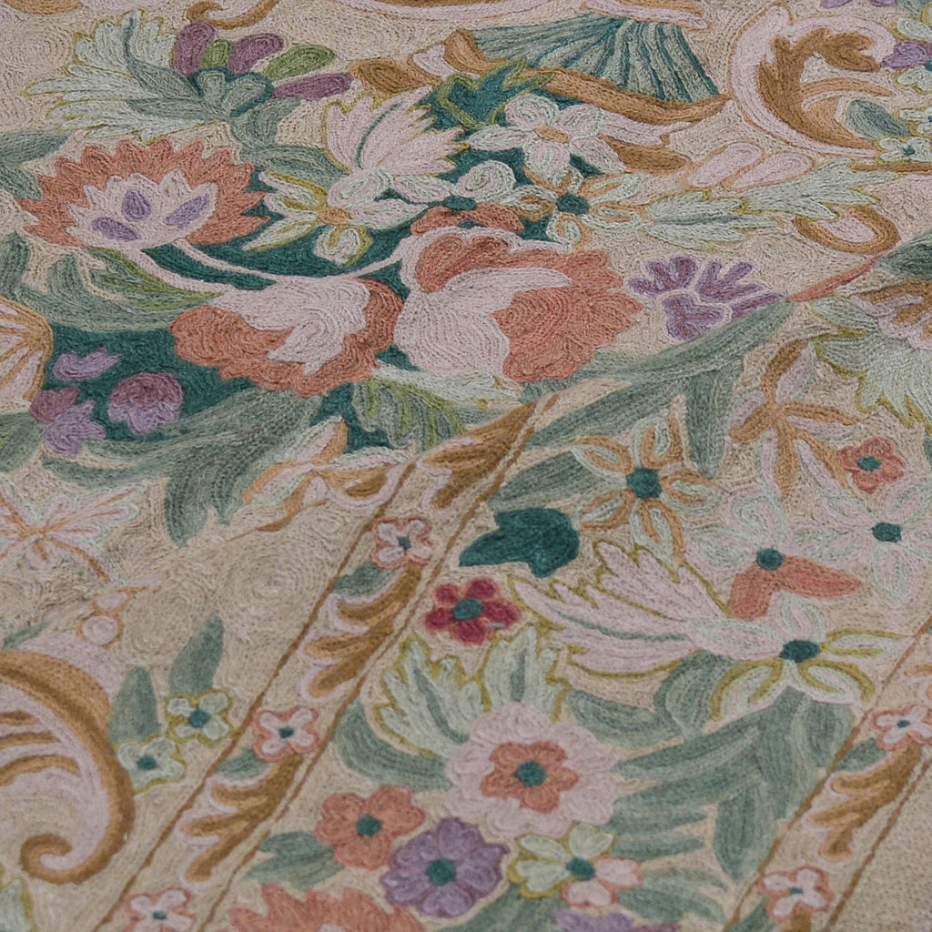 Chain stitching is an embroidery technique that is stitched into a finished woven fabric. The ability to incorporate designs one stitch at a time rather than through a weaving process can create strikingly beautiful patterns. This stitch also allows the artist to utilize any color they choose at any point across the background. This freedom to add point-by-point color results in fascinating, multi-faceted designs that can truly range anywhere from formal to festive.