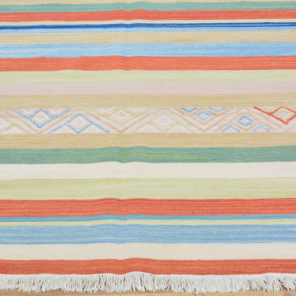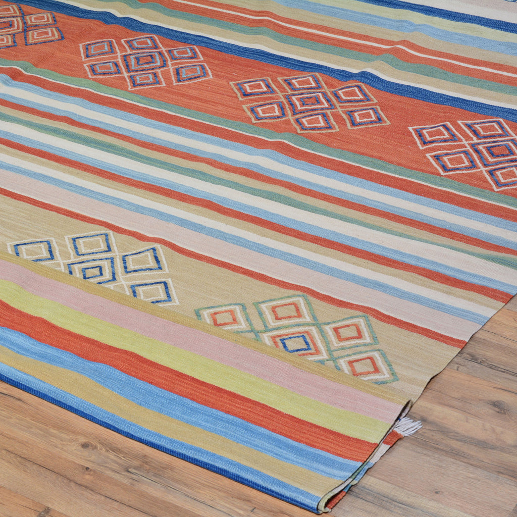 To avoid long vertical slits that can make a Hand-Woven rug not durable, most Kilim rugs are created with diagonal or horizontal patterns. This is why it's very common to see octagons, diamonds and triangular shapes in a Flatweave rug.