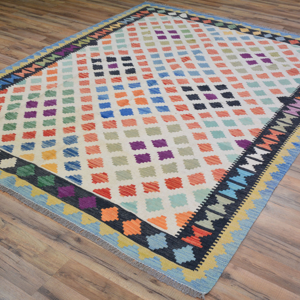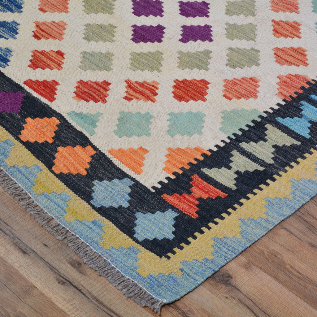 To avoid long vertical slits that can make a Hand-Woven rug not durable, most Kilim rugs are created with diagonal or horizontal patterns. This is why it's very common to see octagons, diamonds and triangular shapes in a Flatweave rug.