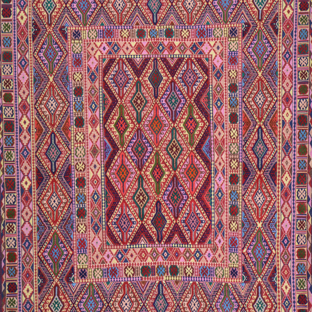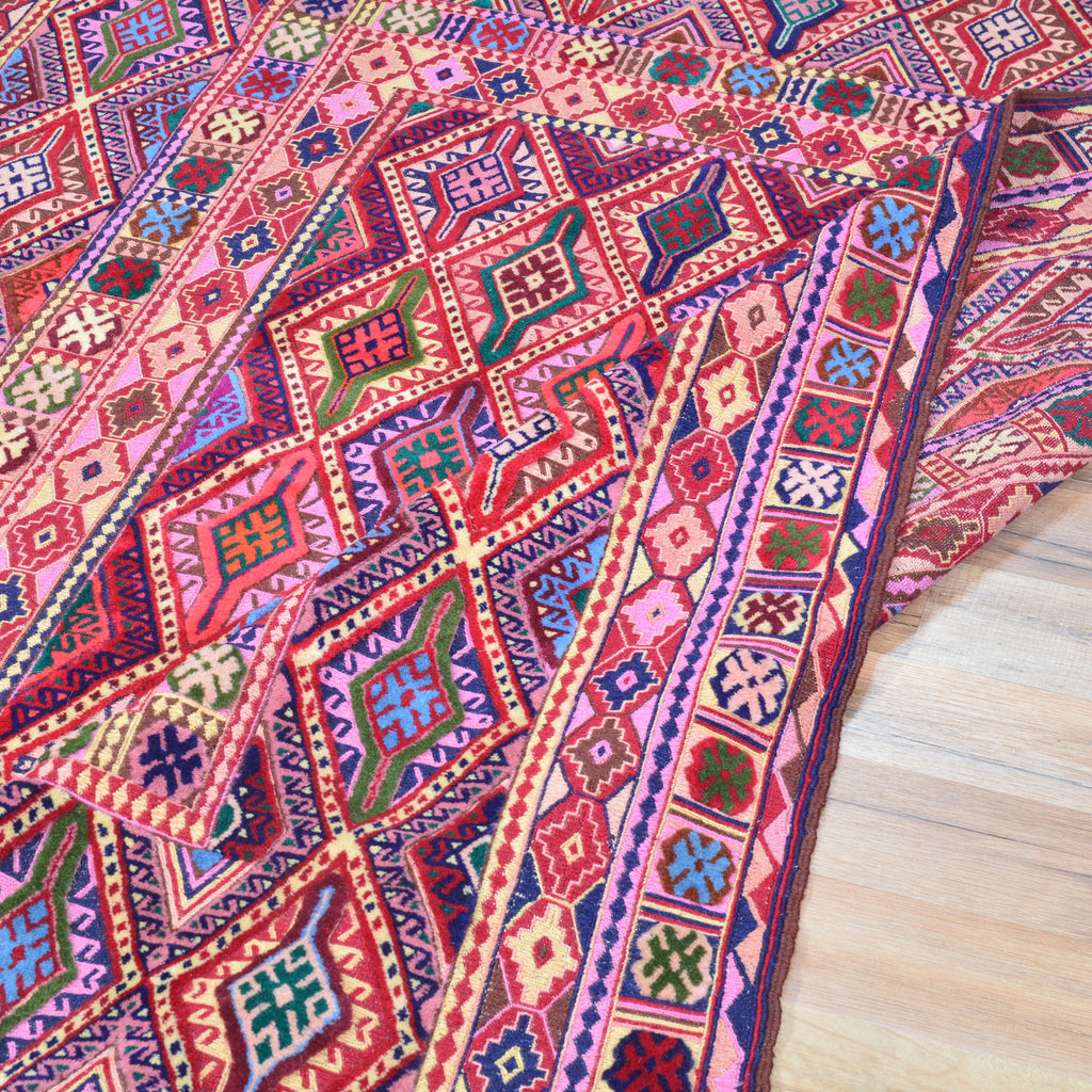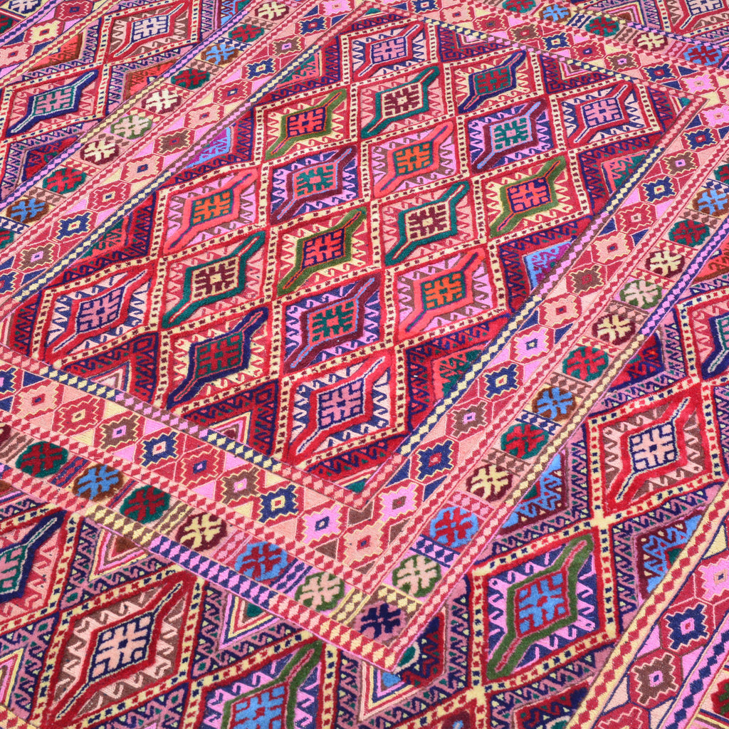 This technique combines both types of weaving, Hand-Knotted and the Soumak technique. This type of weaving uses the Soumak weave to highlight areas of a piled Hand-Knotted rug, creating a unique sturdy texture.