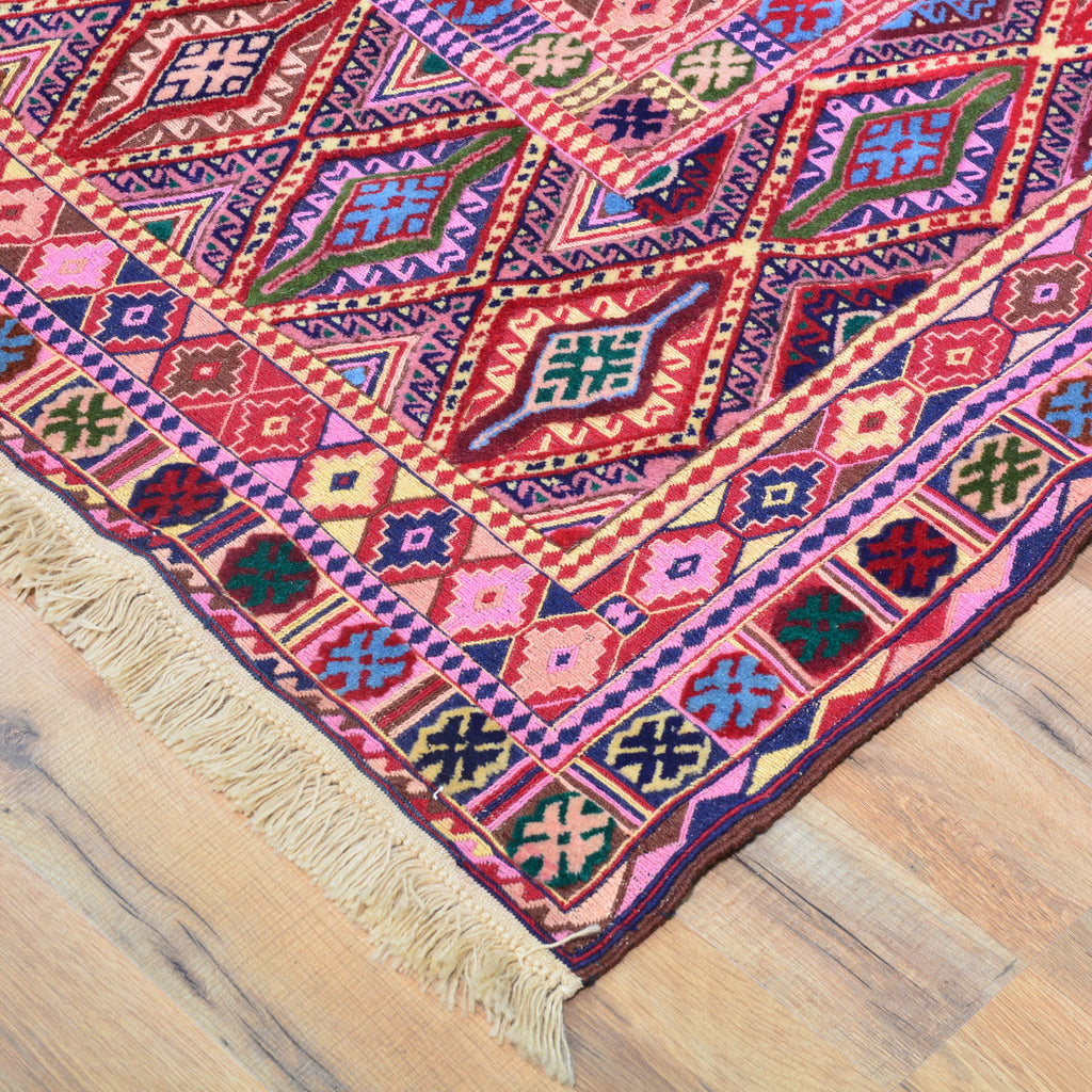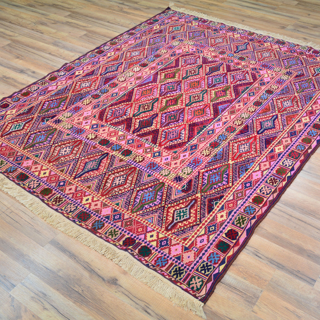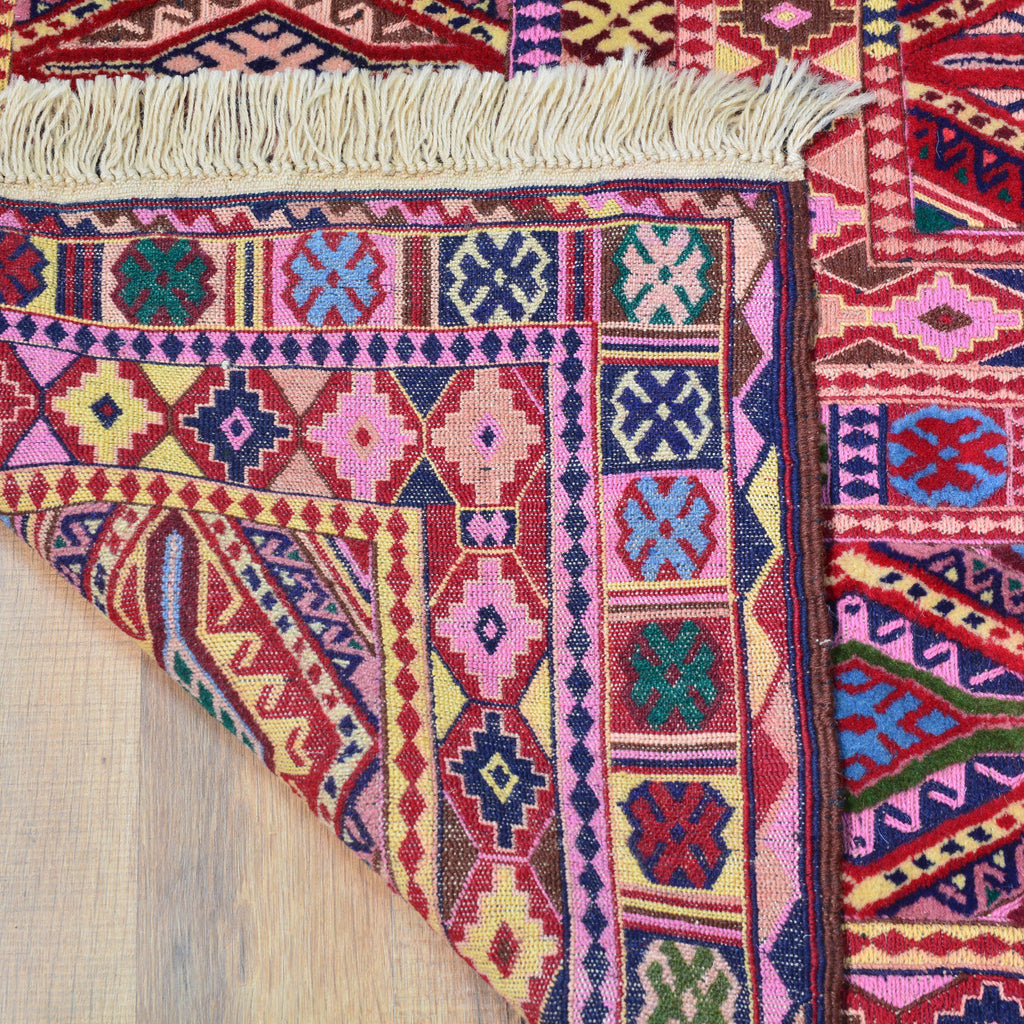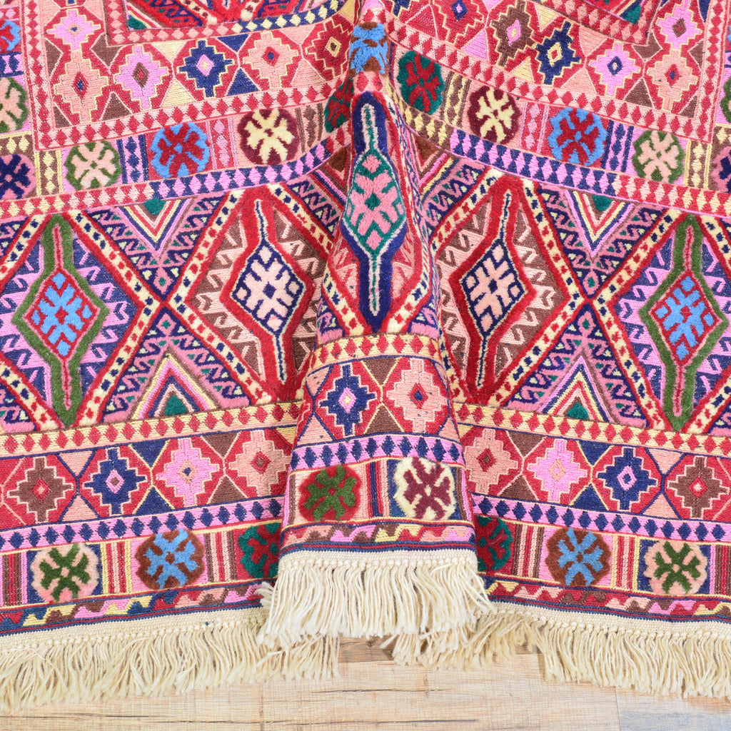 This technique combines both types of weaving, Hand-Knotted and the Soumak technique. This type of weaving uses the Soumak weave to highlight areas of a piled Hand-Knotted rug, creating a unique sturdy texture.