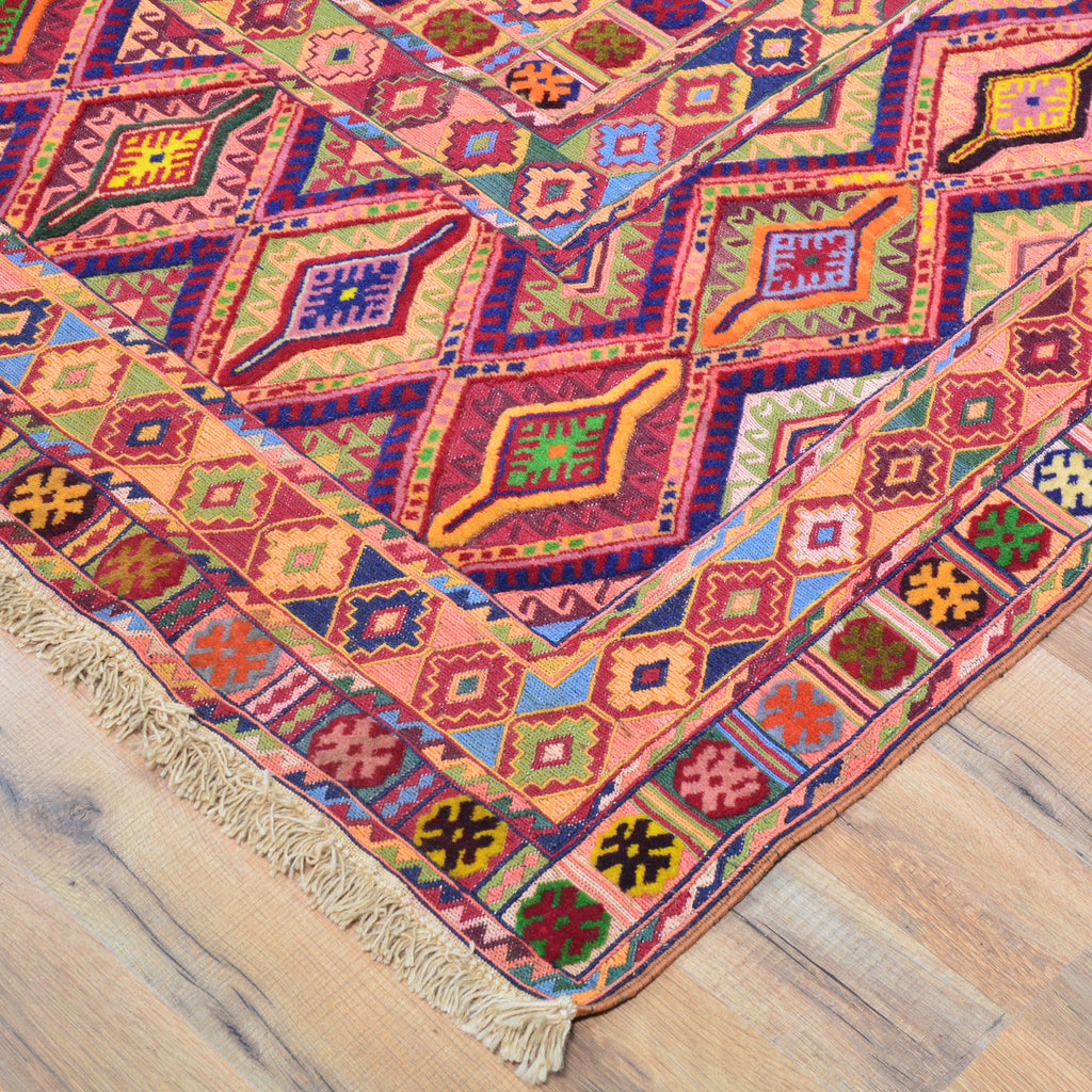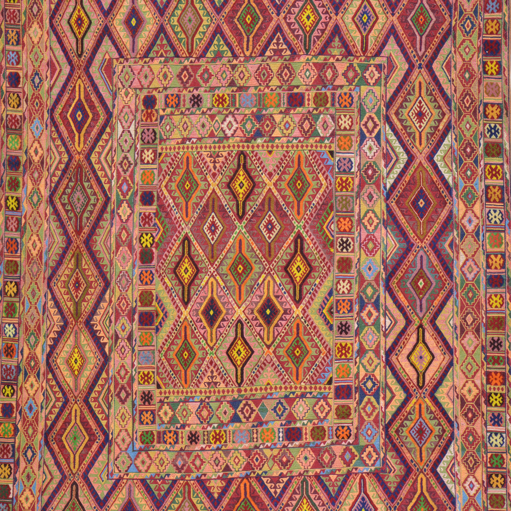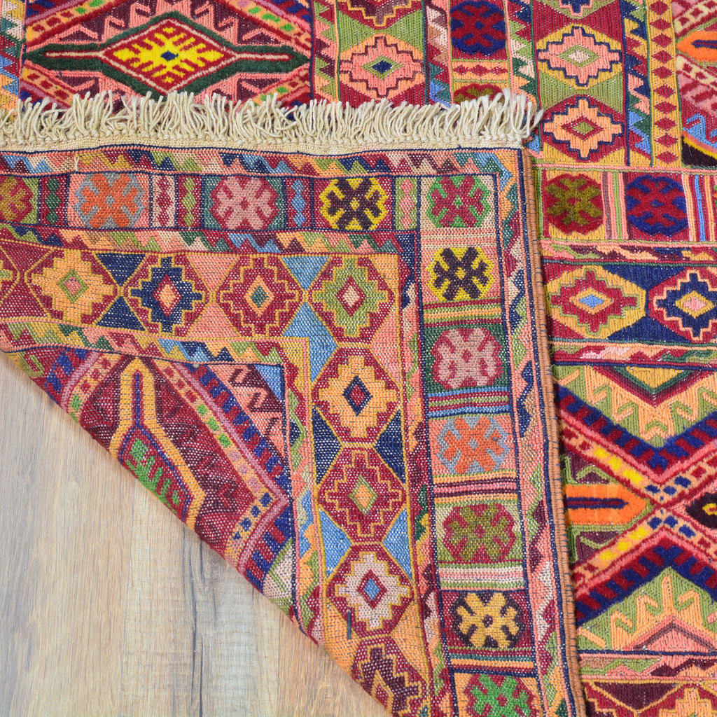 This technique combines both types of weaving, Hand-Knotted and the Soumak technique. This type of weaving uses the Soumak weave to highlight areas of a piled Hand-Knotted rug, creating a unique sturdy texture.