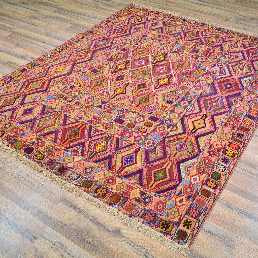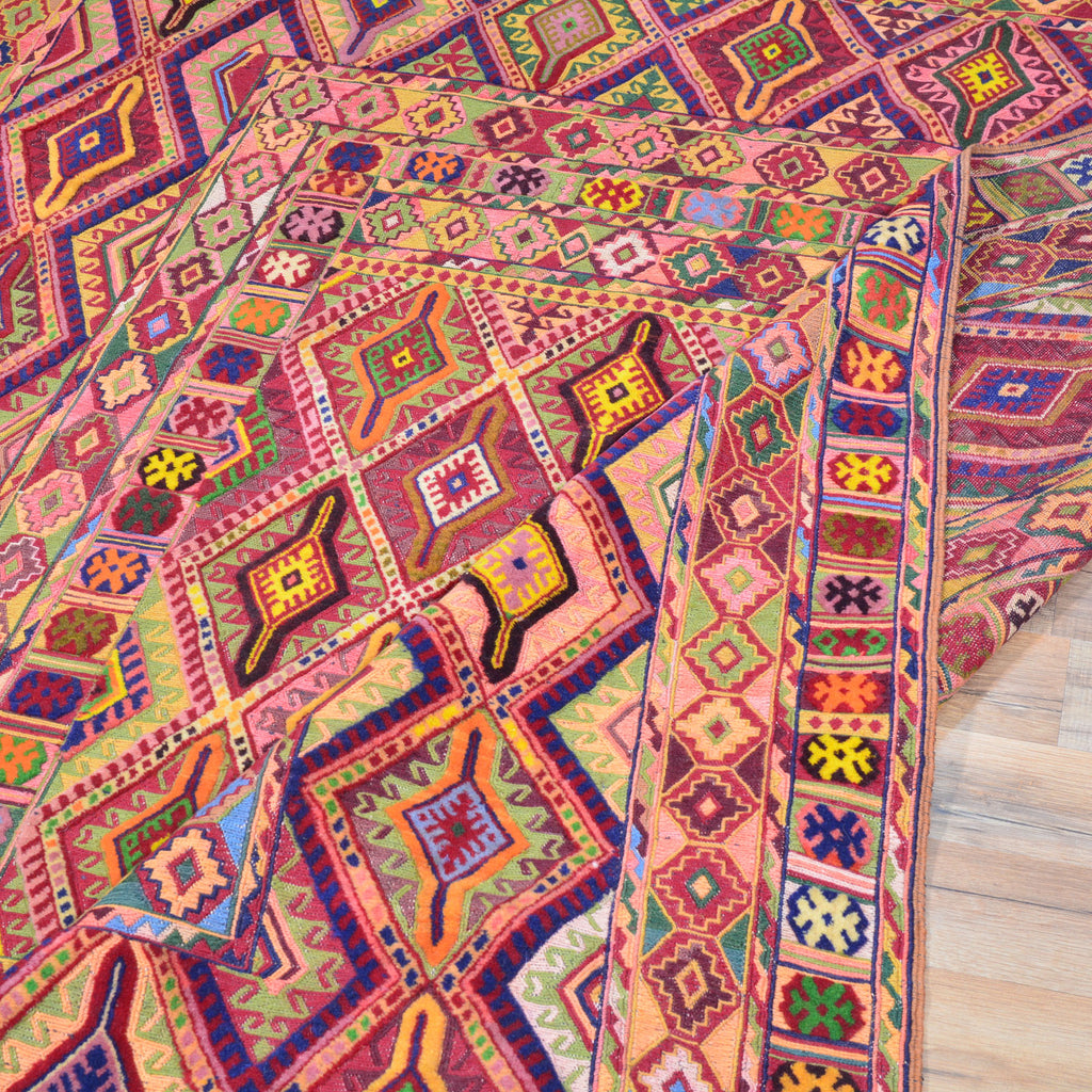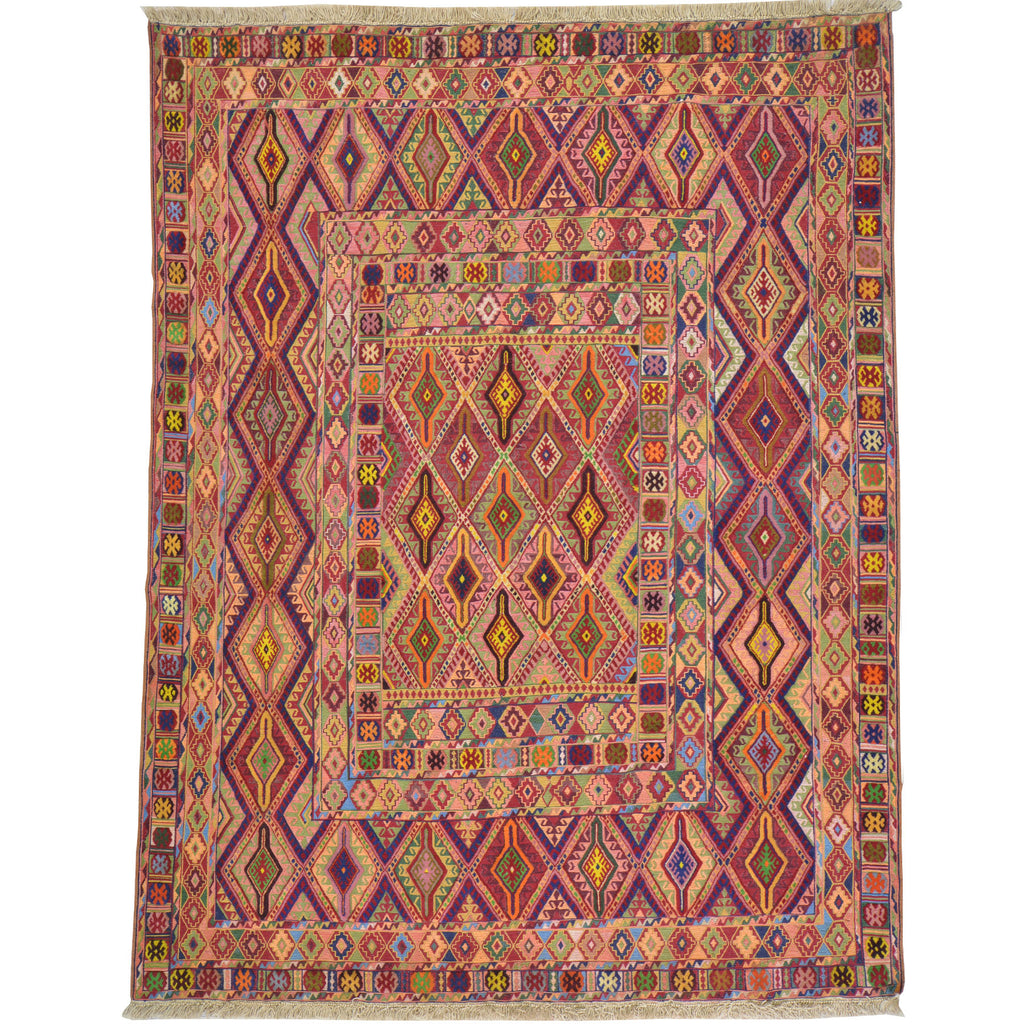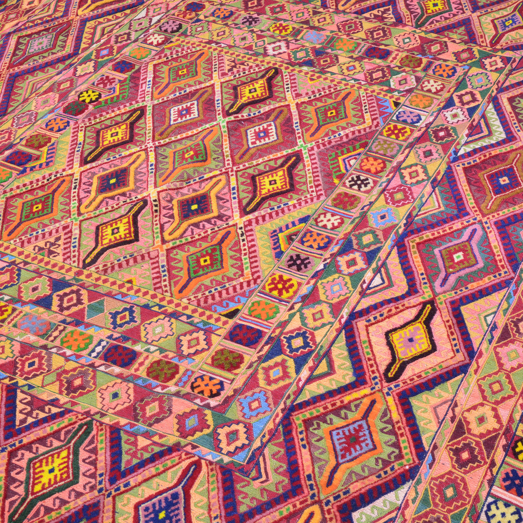This technique combines both types of weaving, Hand-Knotted and the Soumak technique. This type of weaving uses the Soumak weave to highlight areas of a piled Hand-Knotted rug, creating a unique sturdy texture.