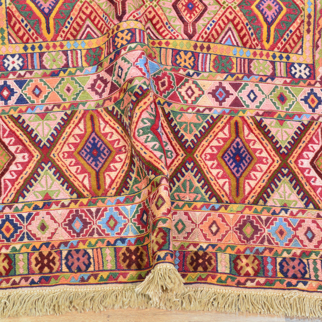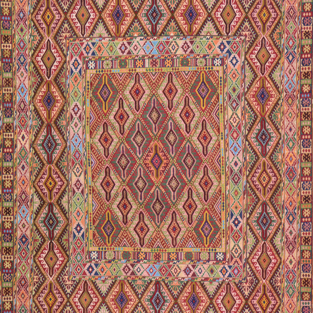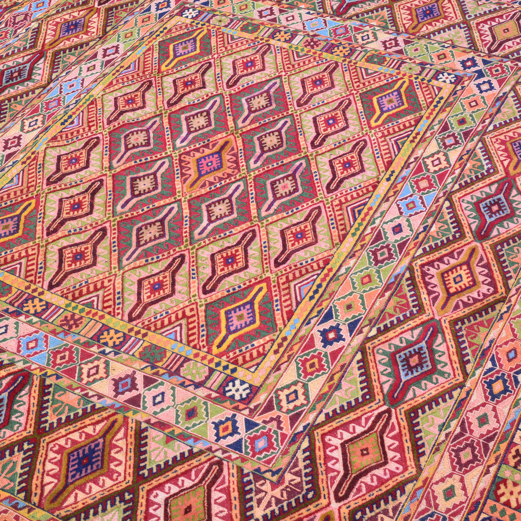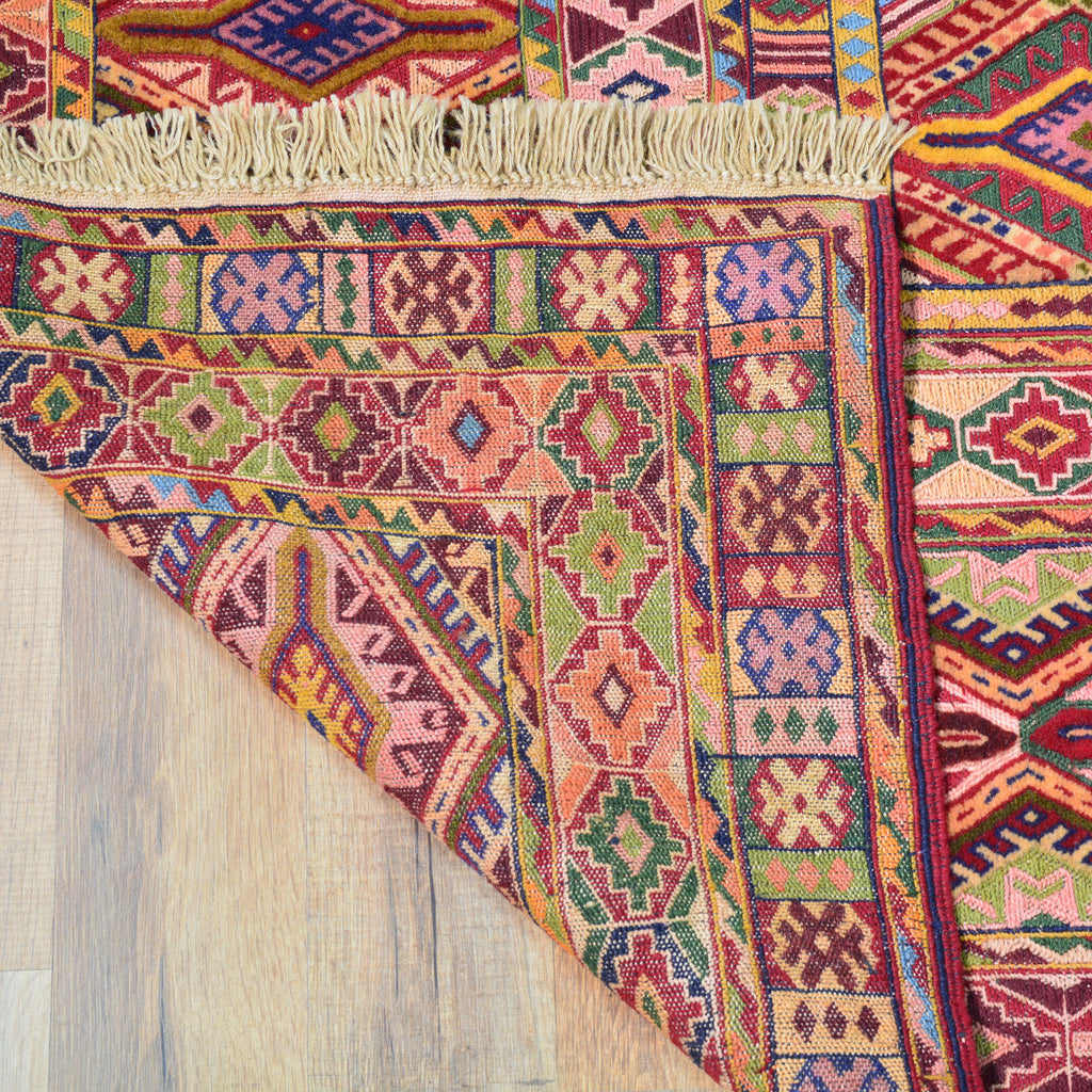 This technique combines both types of weaving, Hand-Knotted and the Soumak technique. This type of weaving uses the Soumak weave to highlight areas of a piled Hand-Knotted rug, creating a unique sturdy texture.